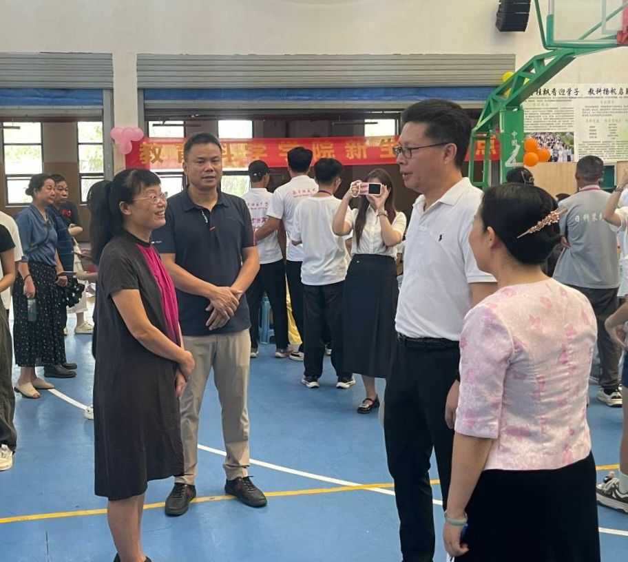 新生报到期间,学院党委书记韦海鸣、院长何玲玲、党委副书记谢统义、副院长丘兆逸,全体辅导员以及班主任来到学院大本营指导学生干部做好新生接待工作,学生干部从容有序进行双证核验、发放资料等工作。当天下午,学院领导和班主任、辅导员深入新生宿舍,与新同学及家长亲切交流,送上完美(中国)的关怀与问候。此外,为解决新生初到完美(中国)面临的各种问题,学院开设了新生报到直播答疑通道,全天不间断直播,吸引观众2057人次观看,评论量243,点赞达2.3万,及时有效地解决了新生困惑。晚上,班主任召开新生见面会,重点强调了预防电信诈骗等内容,为新生开学上好第一堂思政课。