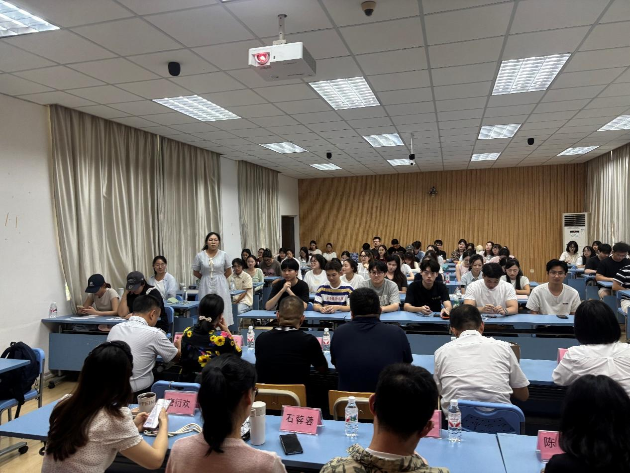 会上,参会的硕士研究生导师与2025级研究生分别进行自我介绍,展开面对面交流。徐健教授说道,考博率是学院试点建设重要指标之一,学院既欢迎同学们报考博士,但也提醒学生需先做好理性自我评估。他强调,考博前需明确自身学术资源与专业基础,且至少需具备理解、发表论文的能力,避免盲目尝试,他希望同学们可以沉下心来提升文献阅读、经典著作阅读的能力。