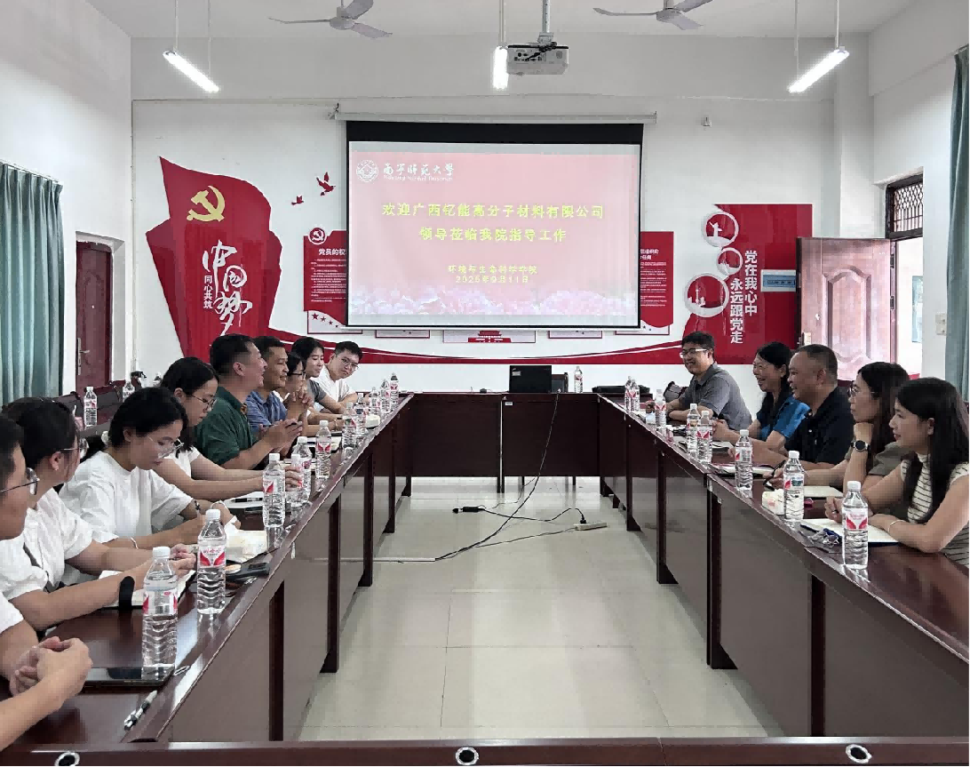 2025年09月11日,广西钇能高分子材料有限公司总经理陈闵富、企业技术总监杨芳显等携环境与生命科学学院7名优秀毕业生返校,开展校企交流座谈会。学院参会的有院长何英姿、党委副书记刘启满、组织员普胤杰、企业科技特派员莫莉萍、团委书记刘雅楠及辅导员甘佩萍。