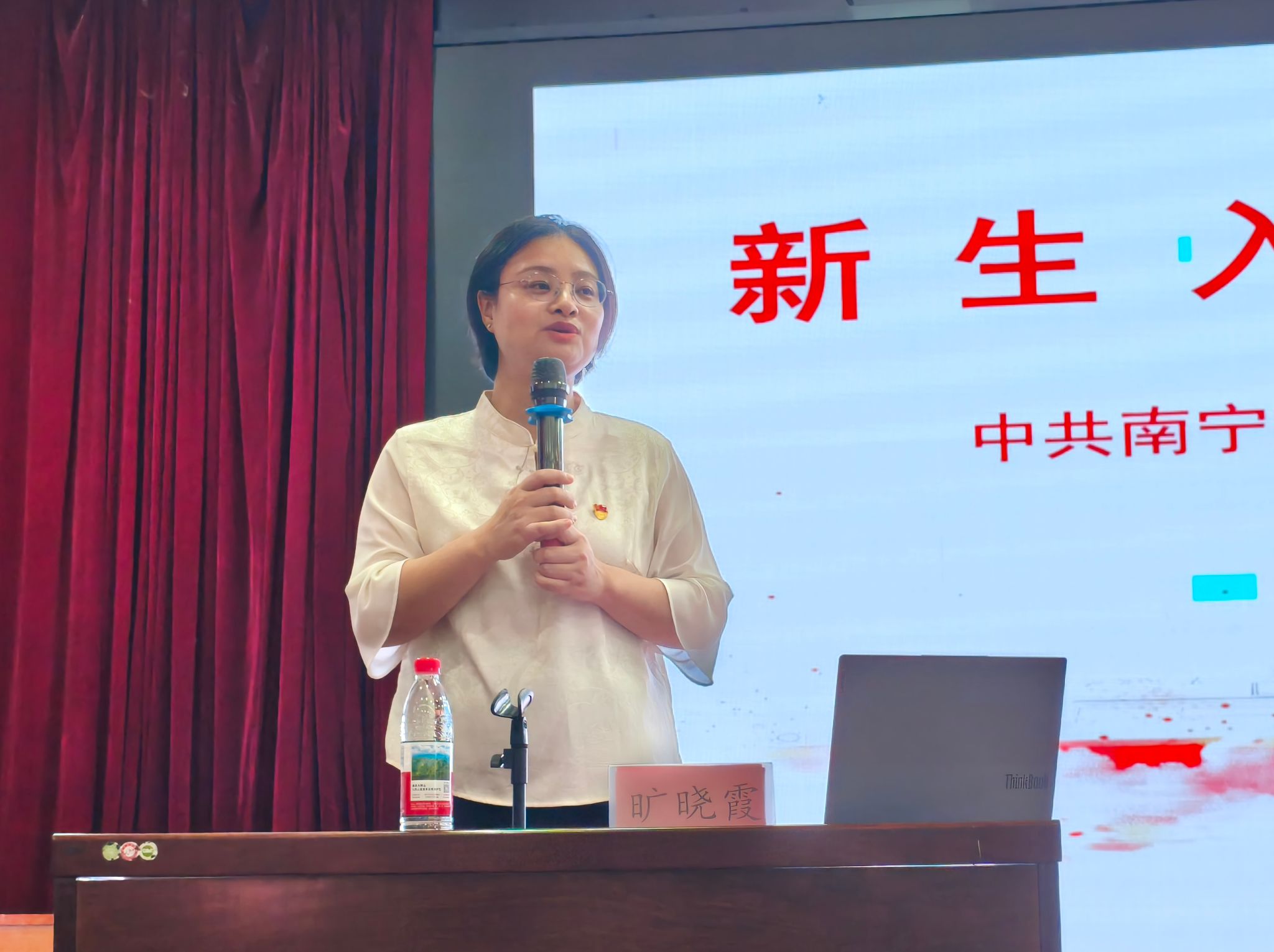 为加强新生思想引领,筑牢理想信念根基,进一步增进青年大学生对中国共产党的认识,9月16日下午,国际教育学院在明秀校区会堂举行2025级新生入党启蒙教育大会,学院党委书记旷晓霞主讲课程,2025级全体新生参加。会议由学院团委书记张焱主持。