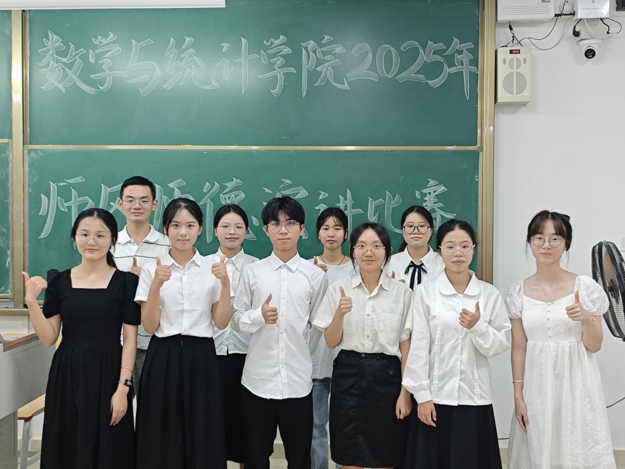 为引导师范生提前筑牢师德根基,将“学高为师,身正为范”的理念内化于心,9月23日,数学与统计学院在实验2-A303教室举办2025年师德师风演讲比赛。学院辅导员方安琪老师、卢若楷老师、滕容梅老师担任本次比赛评委。