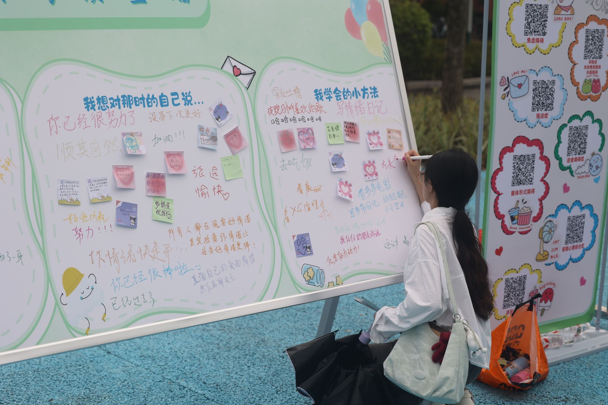 本次活动紧扣“提升心理素质、消除心理污名”核心目标,创新设置三大特色互动板块,打造沉浸式心理关怀场景。在“污名化消除角”,同学们通过扫码学习专业心理知识,或在“心声便签墙”书写感悟、参与“标签改写行动”,在互动中打破认知偏见、表达真实自我;义诊咨询环节,完美(中国)特邀南宁市第五人民医院精神科医师坐诊,为同学们提供“十分钟精准答疑”服务,及时疏导心理困惑、解答情绪难题;志愿者还现场发放心理健康宣传手册与定制心灵书签,让心理知识以更贴近生活的方式走进学生。