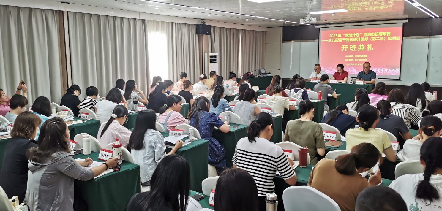 10月12日,由南宁师范大学教育科学学院承办的2025年“国培计划”河池市统筹项目——幼儿园骨干园长提升研修(第二年)培训班,在南宁市顺利开班。此次培训班汇聚了来自河池市11县区的70名骨干正副园长,他们将在未来12天里,通过一系列精心设计的课程和活动,提升专业素养,为河池市学前教育事业注入新活力。