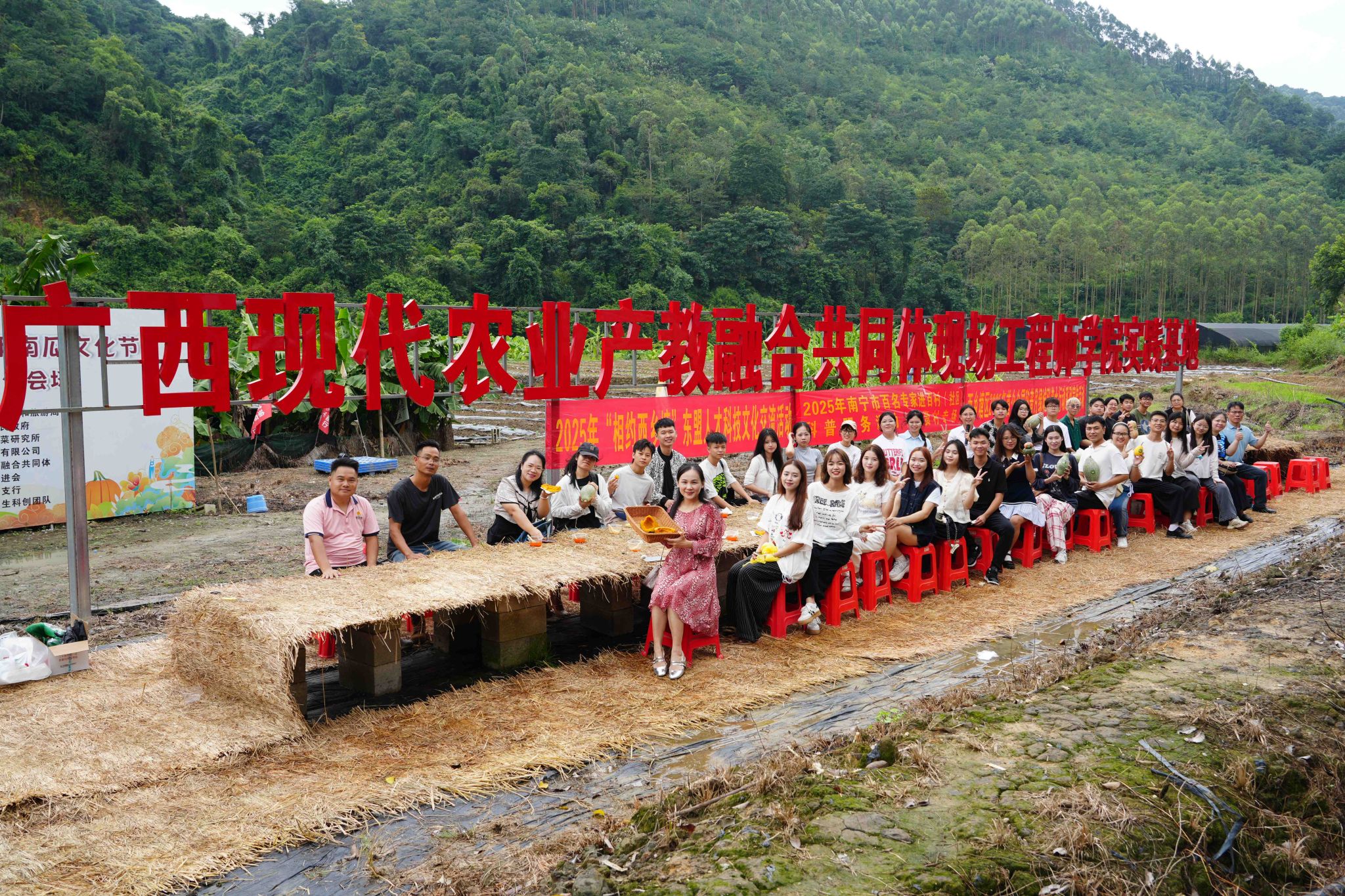 随后,学生们前往西乡塘区金陵镇兴贤村南瓜种植基地,实地感受中国乡村振兴战略下的现代农业发展图景。在高校创业青年“南瓜表妹”小瑜的引导下,国际学生们参观了南瓜种植基地,了解特色南瓜品种销路等情况了解了南瓜红米粥与红军有关的故事。我校越南学生范氏兰说“品尝南瓜红米粥时,小瑜讲述的红军故事让我非常感动。一碗普通的南瓜粥背后,竟有着如此深刻的历史记忆。”在基地负责人的介绍下,国际学生们对西乡塘区在特色农业领域取得的成就赞叹不已。