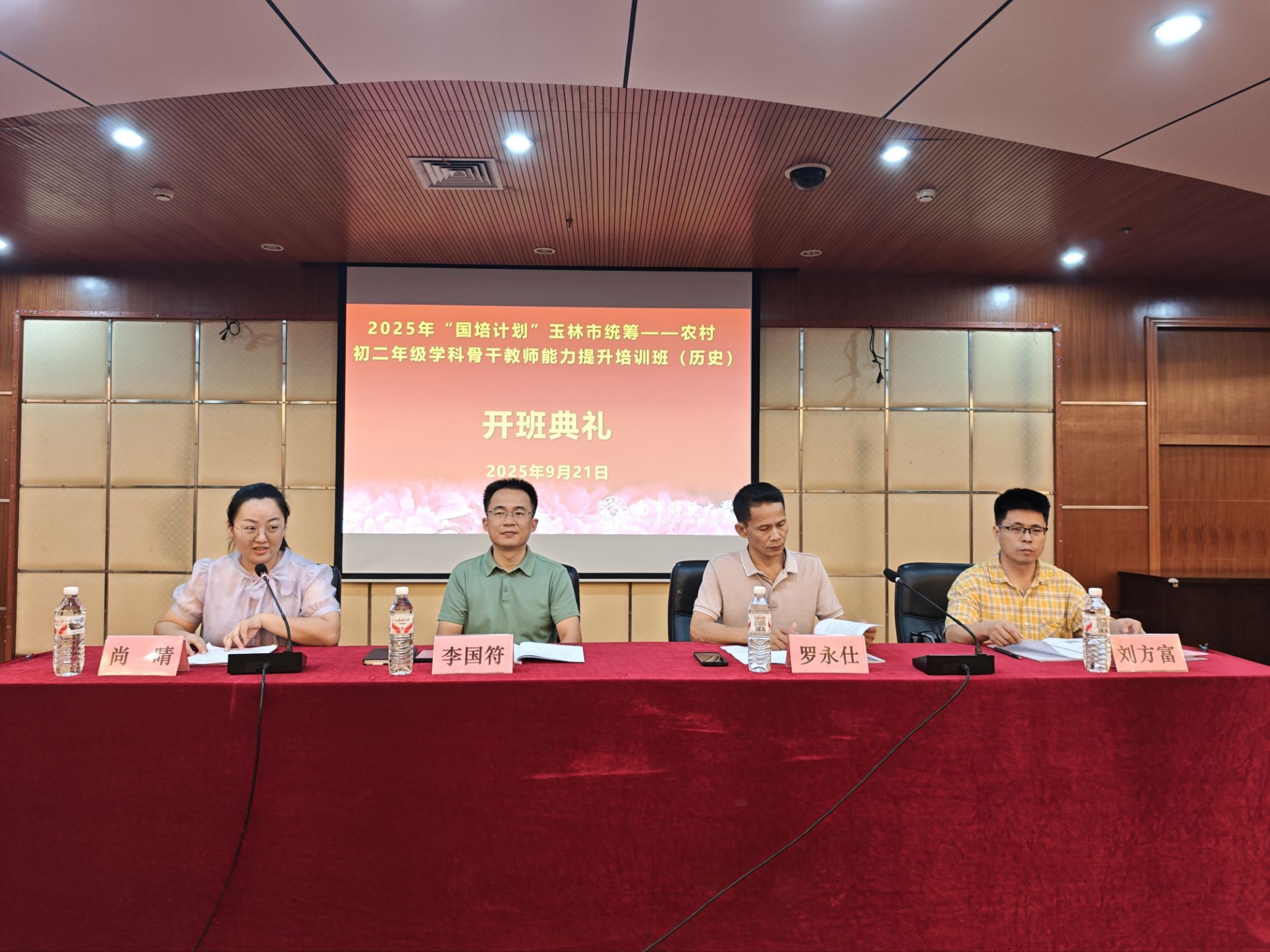 为贯彻落实国家及党的教育方针政策,全面提升玉林市农村初二年级历史学科骨干教师的教学能力和育人水平,推动玉林市农村基础教育事业的快速发展,2025年“国培计划”玉林市统筹——农村初二年级历史学科骨干教师能力提升培训班于9月21日下午在我校明秀校区图书馆301室隆重开幕,来自玉林市各县区的60位优秀初二年级历史学科骨干教师参加此次培训并出席开班典礼。玉林市教师培训中心李国符主任、南宁师范大学法学与社会学院罗永仕副院长、历史系刘方富主任莅临典礼并发表讲话。开班仪式由尚晴博士主持。