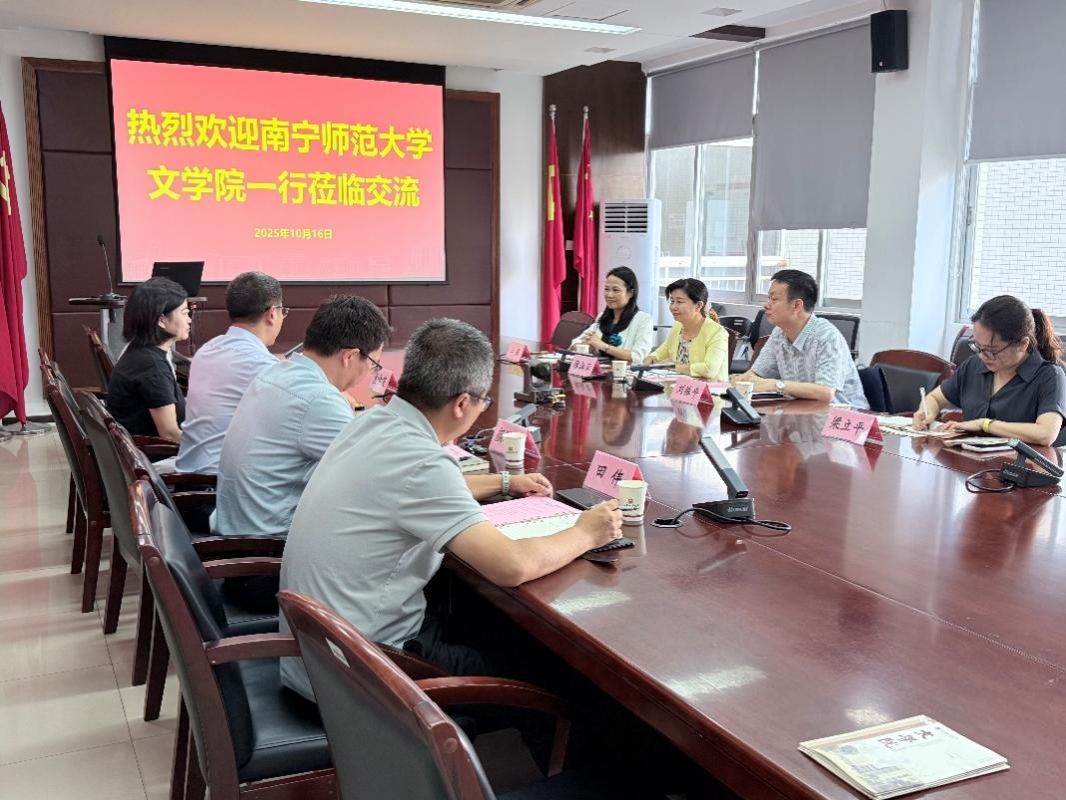 为积极应对高等教育新形势下的挑战,学习借鉴国内同行在专业建设与人才培养方面的先进经验,10月16日上午,南宁师范大学文学院副院长刘振平(主持行政工作)带队赴福建师范大学文学院进行专题调研交流。此次调研旨在通过深入对话,为我院汉语言文学专业的改革创新与卓越拔尖人才培养汲取宝贵经验。
