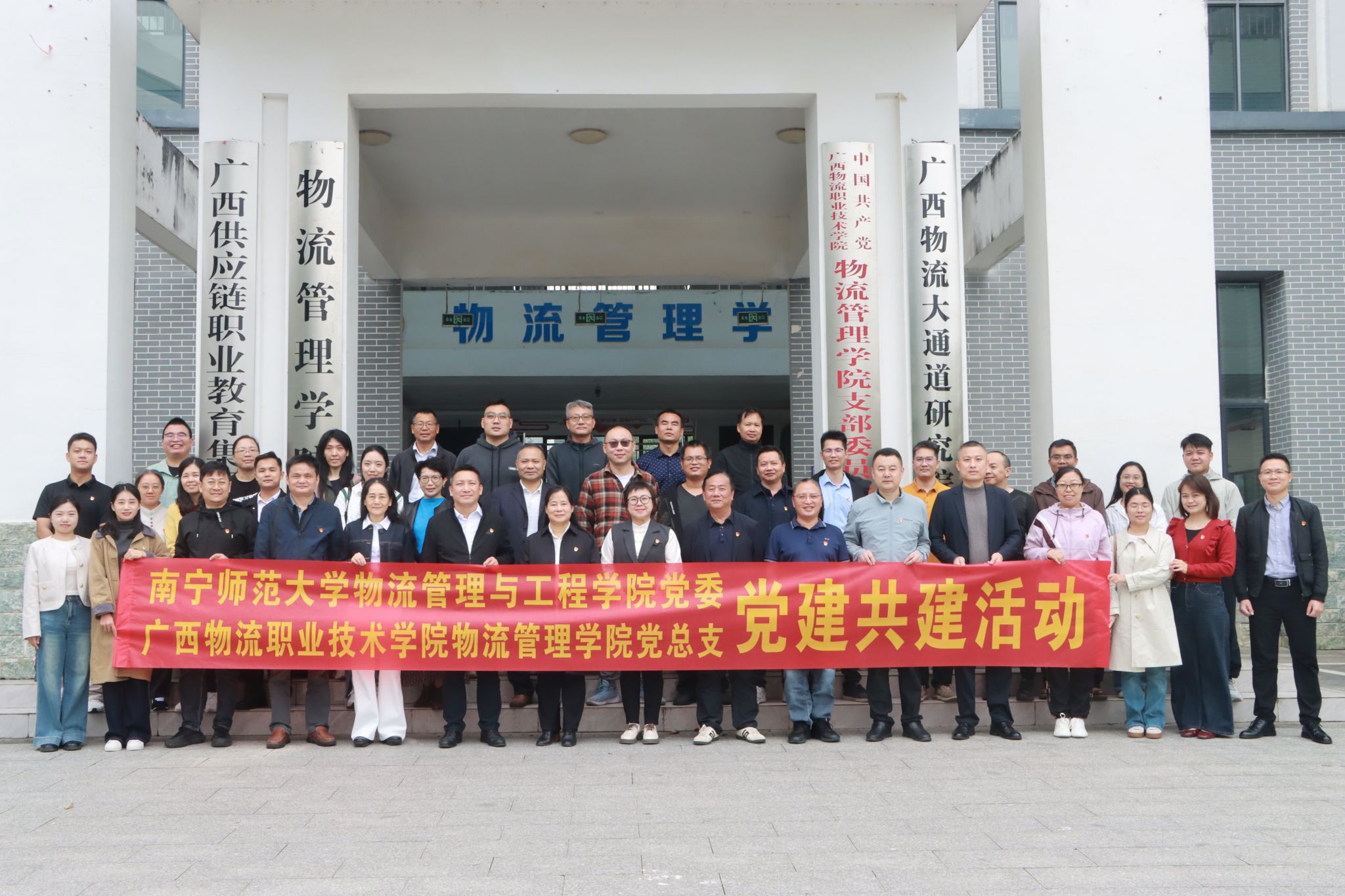 活动首站,物流管理与工程学院抵达广西物流职业技术学院物流管理学院,开展党建共建活动。学院教师先后参观对方学院党建品牌文化墙、党员活动室及物流实训室,深入了解“党建引领 物流先锋”的特色模式。在座谈会上,双方围绕党建与业务深度融合展开热烈交流,分享“党建+实训教学”“党建+校企合作”等方面的创新实践,并共同签署党建共建协议书,约定在组织联建、理论联学、资源联享、发展联促、服务联动等方面开展深度合作,构建党建引领高质量发展的新格局。