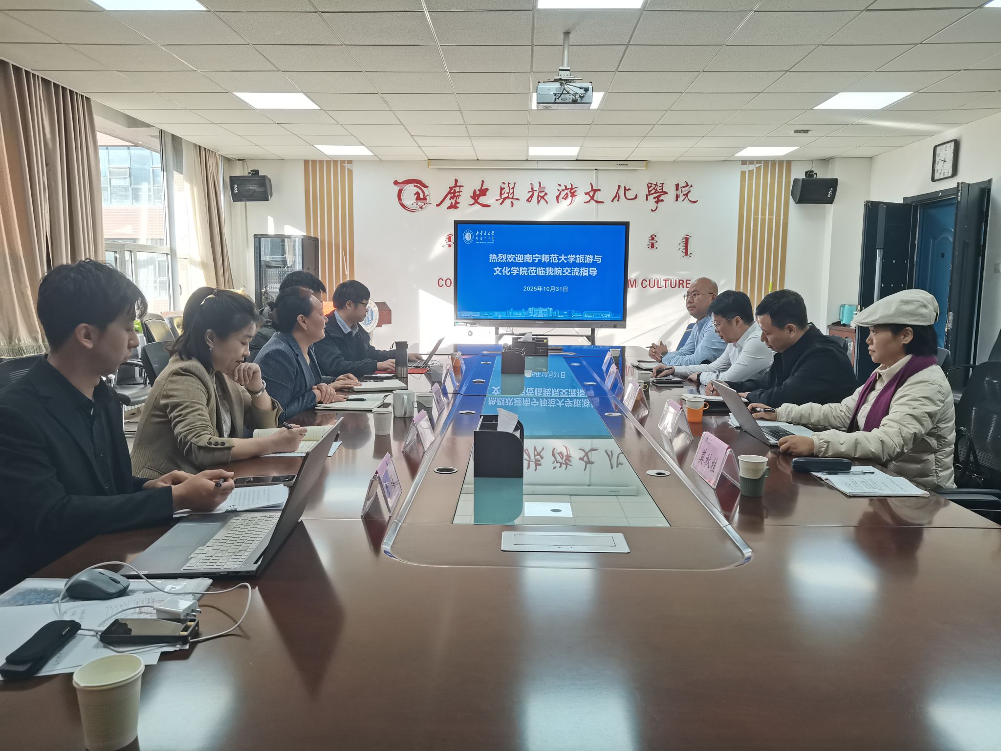 为科学谋划旅游与文化学院“十五五”发展蓝图,深化与兄弟院校的交流协作,借鉴先进经验与做法,提升学院在党团建设、学科发展、人才培养、科学研究及校企合作等方面的整体水平,10月29日至11月2日,旅游与文化学院长段文军、副院长钟学进、张群、团委书记莫秋桂、组织员姜宁一行,先后赴西北师范大学旅游学院、内蒙古师范大学旅游学院、内蒙古大学历史与旅游文化学院及西安航空学院民航学院开展了调研交流。
