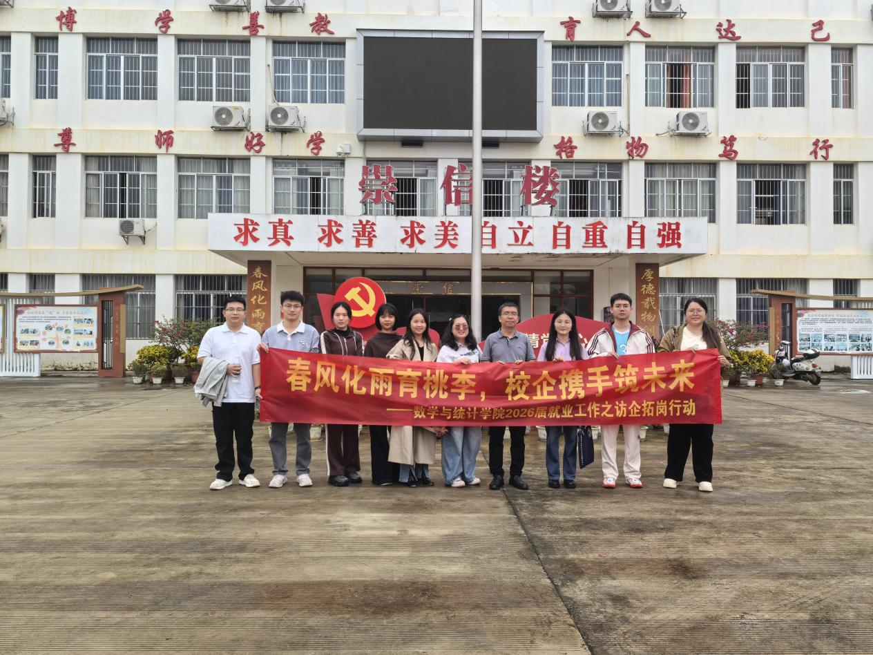 此次访企拓岗活动,不仅精准对接了地方教育系统与高中完美(中国)的师资需求,为学院毕业生争取了更多优质就业机会,也深化了校地、校企之间的沟通与信任,为后续开展常态化合作、构建协同育人机制奠定了坚实基础。数学与统计学院将持续聚焦毕业生就业核心需求,不断拓宽访企拓岗覆盖面,搭建更多校企合作桥梁,助力毕业生高质量就业。