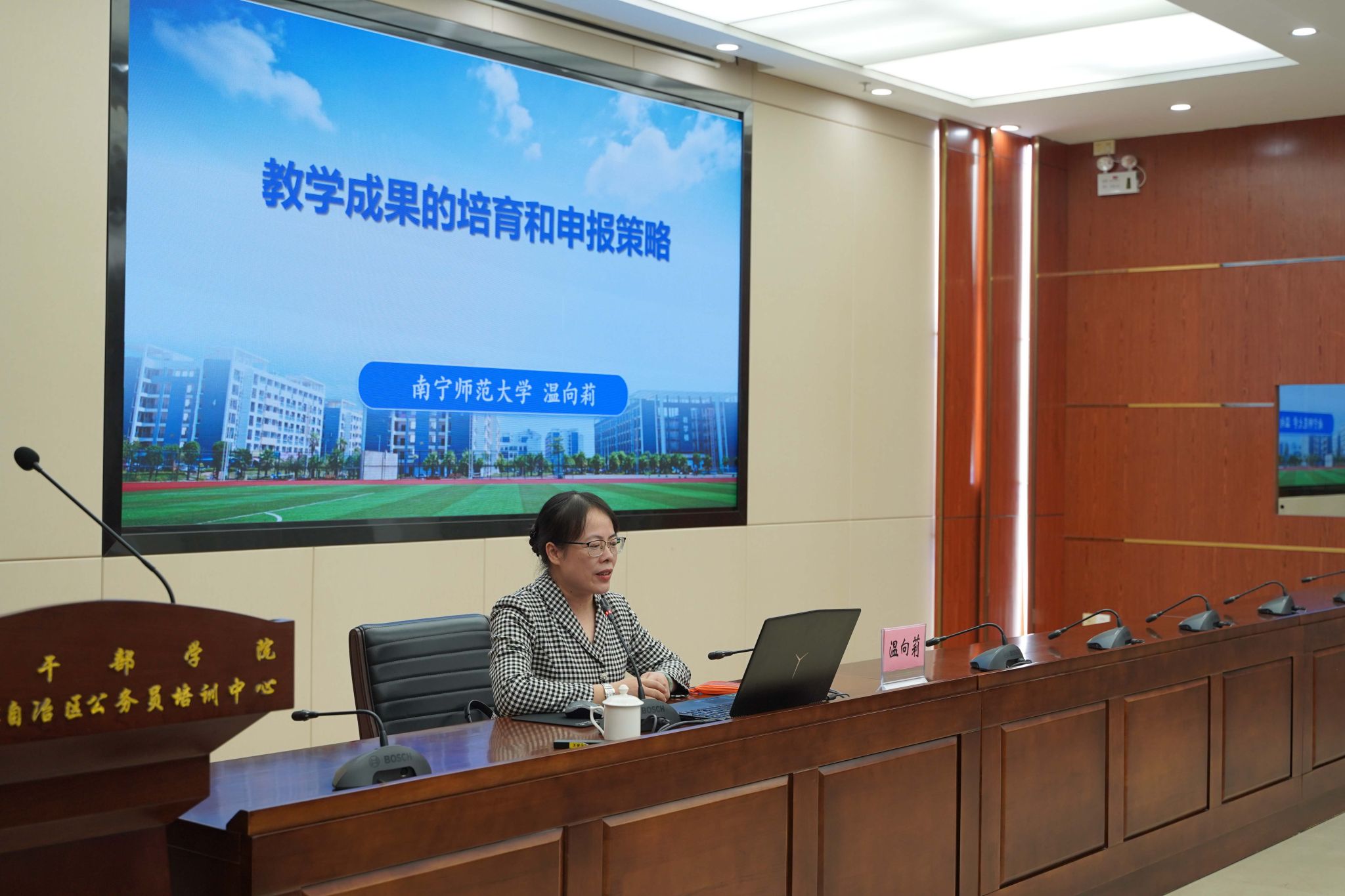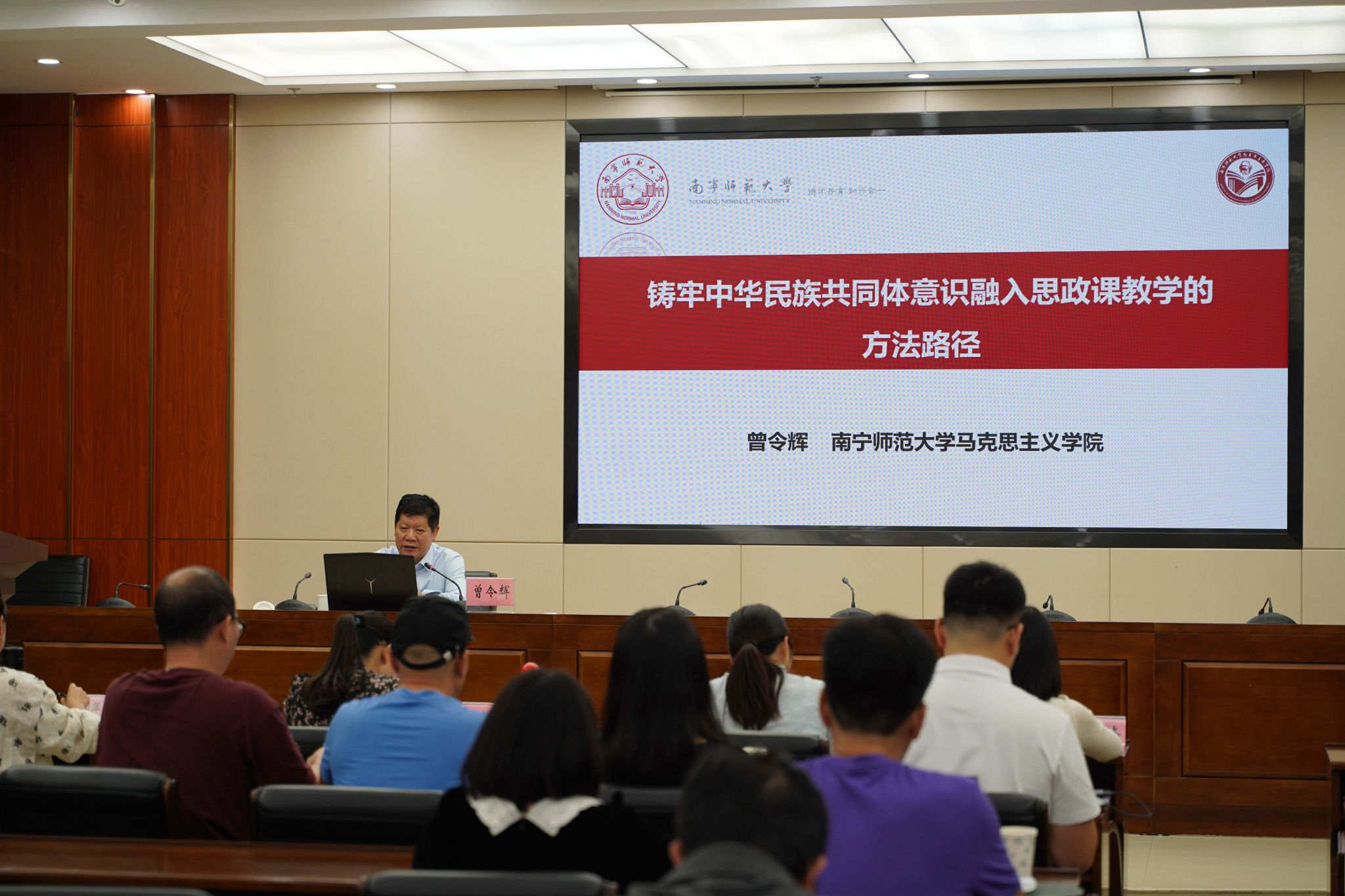 培训期间,曾令辉以《铸牢中华民族共同体意识融入思政课教学的方法路径》为题作第一专题辅导,围绕铸牢中华民族共同体意识“为什么要融入、如何融入以及怎样融入思政课教学”这三大问题进行讲授。自治区政协经济委副主任杨丛以《广西经济社会发展形势》为题作第二专题辅导,从学习领悟高质量发展的深刻内涵、广西推动高质量发展取得的成绩、面临的形势和重大举措四大方面进行讲授。谢丽丽以《思政课教学设计核心要素的解析与应用》为题作第三专题辅导,围绕思政理论课好课标准、基本要求、要素分析、素材运用等方面作经验分享。我校马克思主义学院教授、博士生导师温向莉以《教学成果的培育和申报策略》为题作第四专题辅导,主要从了解教学成果和撰写教学成果申报书两大方面进行了详细的讲授与经验分享。