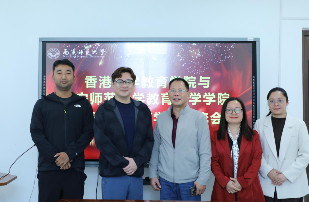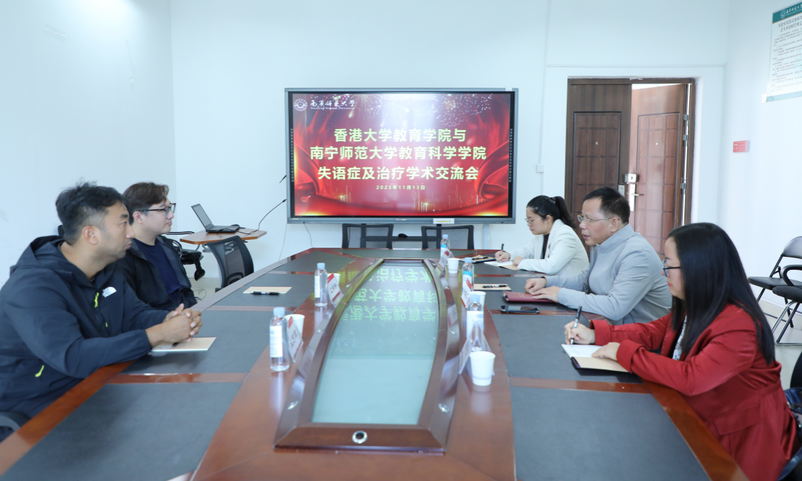 11月13日,香港大学教育学院江柏轩博士、副教授、教育学院失语症科研及治疗实验室主任及其博士生王国辉到访南宁师范大学教育科学学院,围绕失语症研究、言语治疗发展等核心议题开展学术交流。南宁师范大学教育科学学院党委余朝文书记及特殊教育系唐建荣、许玉巧老师参加会议,双方就学科建设、人才培养与合作路径展开深入研讨。