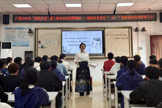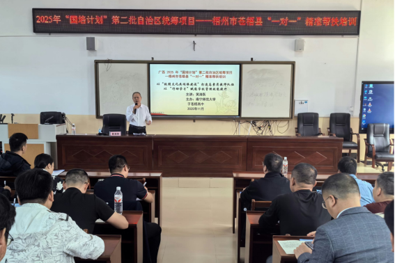 近日,由南宁师范大学承办的广西2025年“国培计划”第二批自治区统筹项目——梧州市苍梧县“一对一”精准帮扶培训,圆满完成集中研修、送教下乡全流程工作,为苍梧县校长、教研员、骨干教师三支队伍注入专业动能,助力县域教育提质。