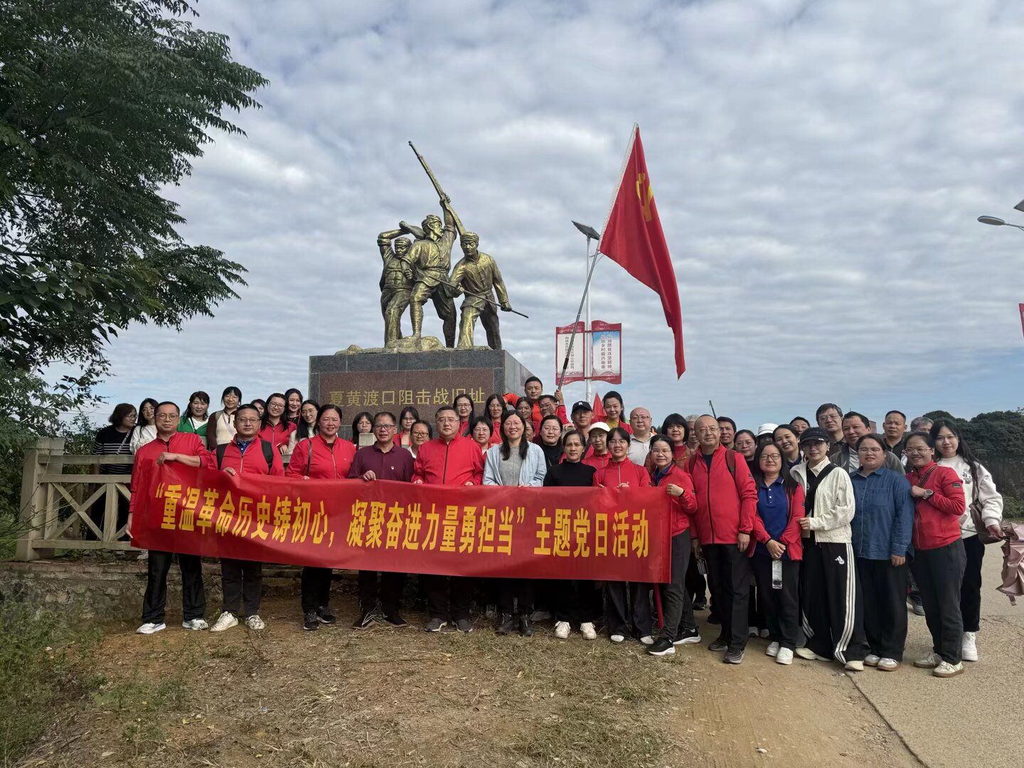 当日在基地讲解员的带领下,大家首先来到夏黄村桥头阻击战现场遗址,聆听革命先辈在战火纷飞的年代浴血奋战、保家卫国的英勇事迹,触摸历史留下的痕迹,深切感受革命先辈为民族解放事业不畏牺牲的崇高精神。在纪念碑前,全体人员庄严肃立,向革命先烈默哀致敬,表达对先烈的深切缅怀与崇高敬意。默哀结束后,大家沿着抗战之路缓步前行,重走革命先辈走过的道路,切身体验革命历程的艰辛与不易。