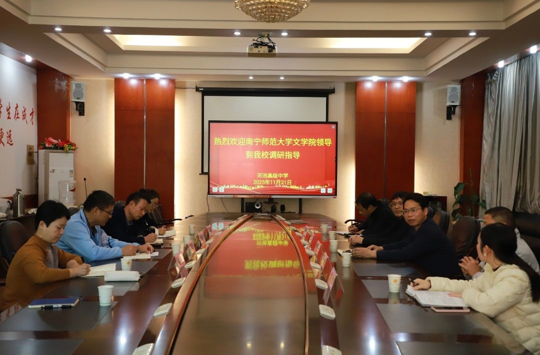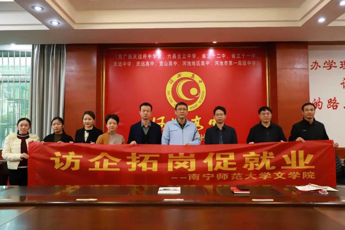 11月21日,南宁师范大学文学院领导班子及教师代表前往河池高中开展访企拓岗专项活动,对接学生就业推荐与来校招聘事宜。