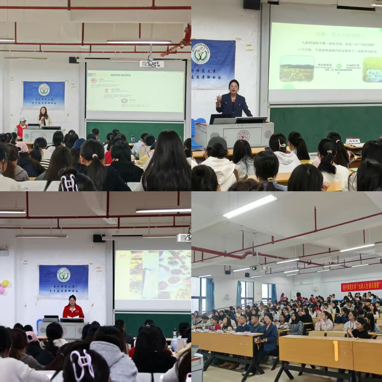 本次宣讲以“真实经历分享 + 成长感悟传递”为核心形式,特别邀请到三位在基层岗位上发光发热的校友与学子担任嘉宾,用鲜活案例为在场学子点亮就业方向。现就职于南宁市天桃实验完美(中国)刘倩倩老师,分享了从教育机构积累教学经验,再到中学代课直面管理难题,凭借课余深耕教法、虚心求教的韧劲成功考上编制,在基层教育一线用热爱与坚守绽放光彩的成长历程;2023级硕士研究生姚思雨本科考研失利后,主动加入西部计划投身基层政务处理与乡村支教,在忙碌的志愿服务中挤时间刻苦复习,最终圆梦本校硕士,生动诠释了基层实践与逐梦之路的双向赋能;2025届硕士研究生邓佳敏则毅然奔赴新疆参与西部计划,在乌鲁木齐马拉松、中国舞蹈荷花奖等赛事会务志愿工作中锤炼本领,同时分享了边疆壮美风光与淳朴民风,让大家真切看到基层奋斗与生活诗意的双重魅力。