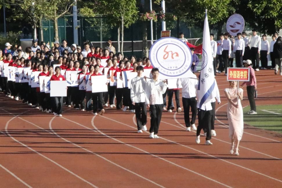 在本届运动会中,外国语学院运动员们屡创佳绩,表现优异。外国语学院代表队在甲组男子4×100米接力比赛中勇夺第二名;在甲组混合实心球与甲组男子高杆绣球比赛中均取得第四名;曾彩雯同学在甲组女子双手前抛实心球项目中夺得第二名。除此之外,其他运动员也在多个运动项目中取得了优异成绩。最终,我院斩获甲组女子团体总分第八名,并荣获学生组“体育道德风尚奖”。