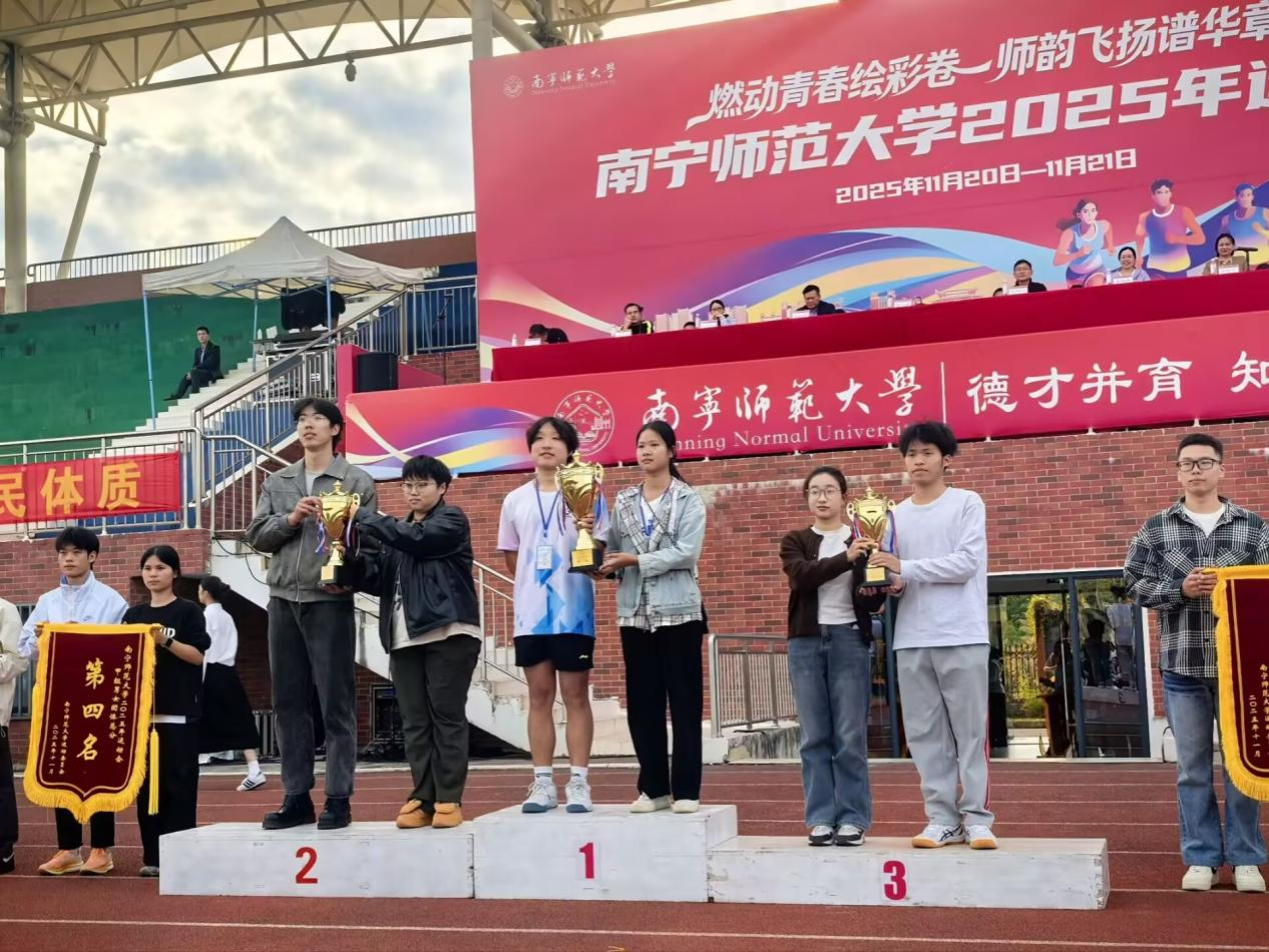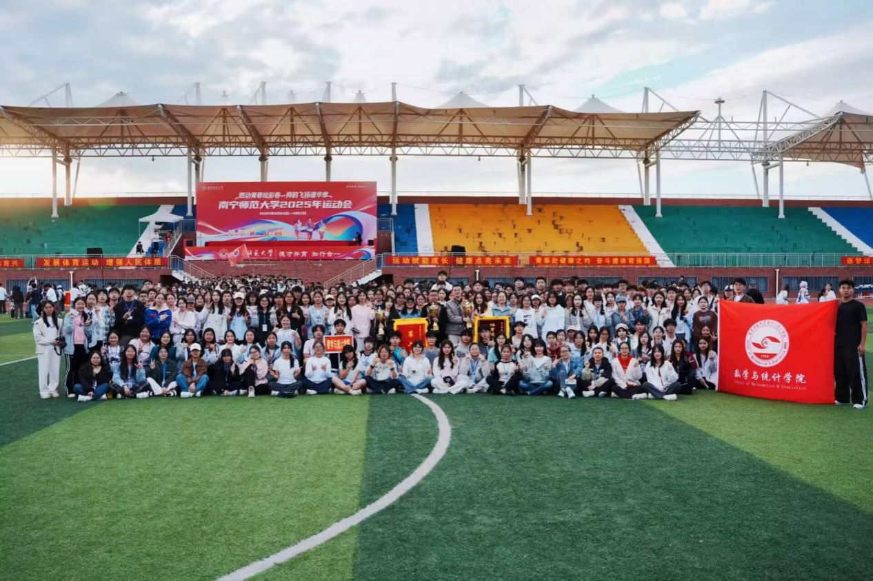 11月20日至21日,南宁师范大学2025年校运会在武鸣校区圆满落幕。数学与统计学院全体师生同心协力、奋勇拼搏,凭借卓越的团队协作与昂扬的奋斗精神,在本届校运会中实现全项冠军的历史性突破,一举夺得甲组男女团体总分第一名、甲组男子团体总分第一名、甲组女子团体总分第一名,同时荣获体育道德风尚奖,成为本届赛事中表现最为出色的队伍。