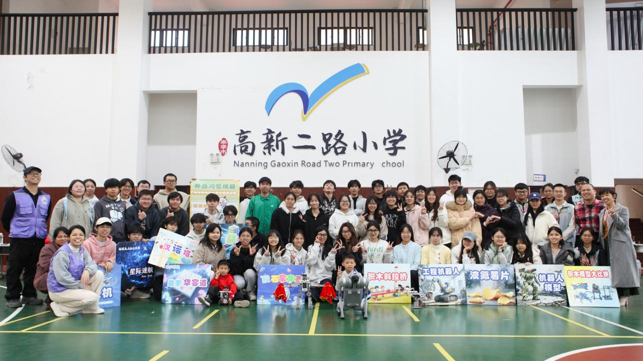 2025年11月18日,南宁师范大学人工智能学院教育技术系与南宁市高新二路小学携手联合举办了校园科技节活动。在欧启忠教授和吴飞燕老师的专业引领与悉心指导下,2023级教育技术学专业全体见习生成功为小学生们精心策划并呈现了一场集科学性、趣味性与实践性于一体的科技体验盛会。