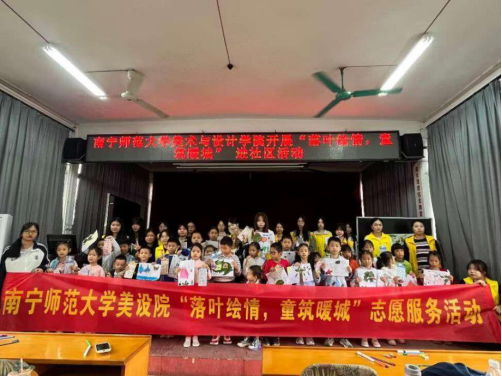 近日,我校美术与设计学院组织志愿者走进武鸣灵水社区,开展了一场以“落叶绘情 童筑暖城”为主题的志愿服务活动,旨在丰富灵水社区文化生活,传递绿色环保理念。