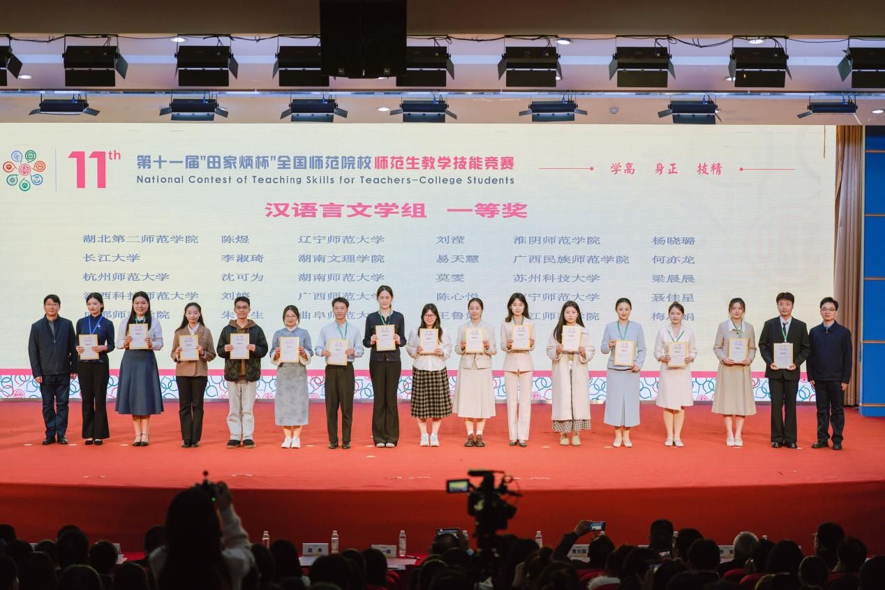 “田家炳杯”全国师范院校师范生教学技能竞赛是国内本科师范教育领域规格最高、权威性最强、影响力最广的全国性赛事,被多所师范院校列为一类学科竞赛。文学院黄铮老师从第五届开始负责此项赛事的指导工作,黄斌与王毅老师先后于2021年和2022年加入指导团队。在已经过去的七届大赛中,该团队保持了稳定的发挥,已累计斩获六个一等奖、一个二等奖。这些丰硕的成果,是文学院“以赛促学、以赛促教、以赛促练”育人理念的有效实践。未来,文学院将继续深化师范生教学技能培养与综合素养提升,致力于为基础教育输送更多兼具专业深度与育人温度的优秀语文教育工作者。