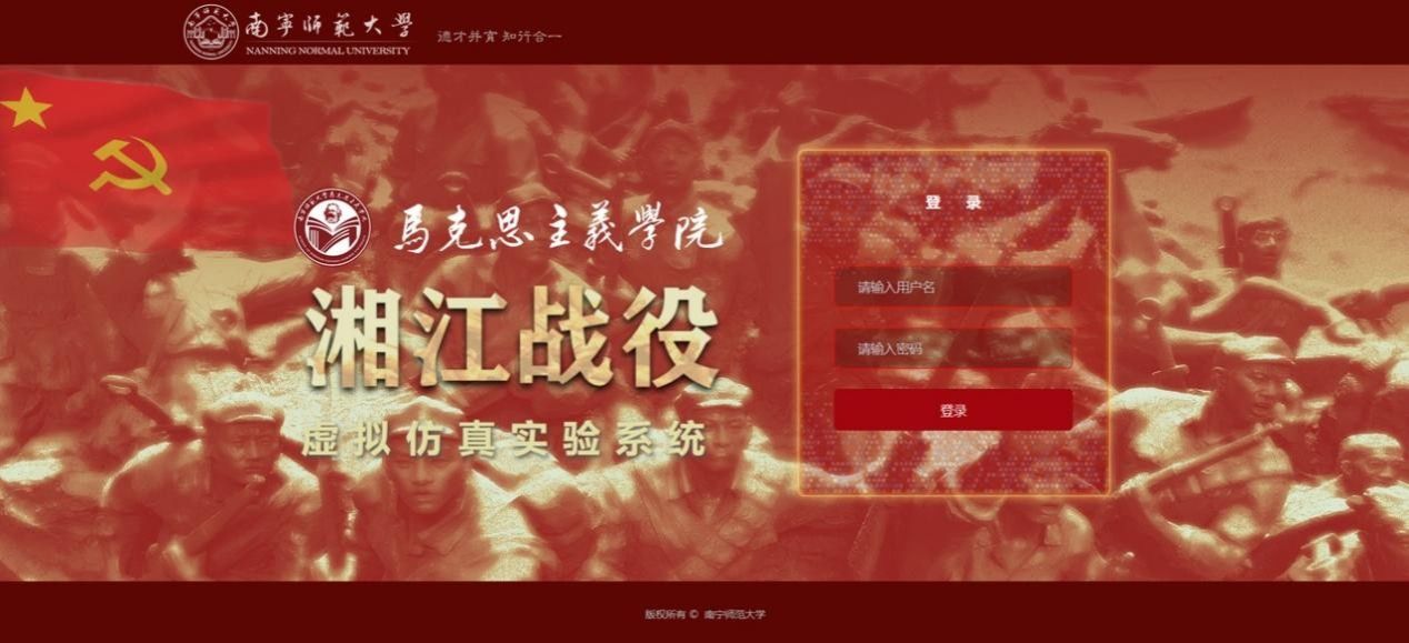 湘江战役是红军长征的壮烈一战,是决定中国革命生死存亡的重要历史事件。红军将士在战役中展现的视死如归、向死而生、一往无前的崇高精神,是滋养当代青年的宝贵精神财富。作为马克思主义学院深耕红色教育数字化转型的重要成果,湘江战役虚拟仿真体验系统以习近平总书记关于湘江战役的重要讲话精神为指引,遵循“虚实融合”原则,运用VR、AR等数字技术构建沉浸式教学场景。系统涵盖学习准备、场馆参观、实践体验、知识闯关、总结反馈五大环节,通过还原战略转移、新圩阻击战、光华铺阻击战等关键场景,让学生在参与式、互动式体验中“亲历”革命历程,实现红色文化传承与数字化教学的深度融合。