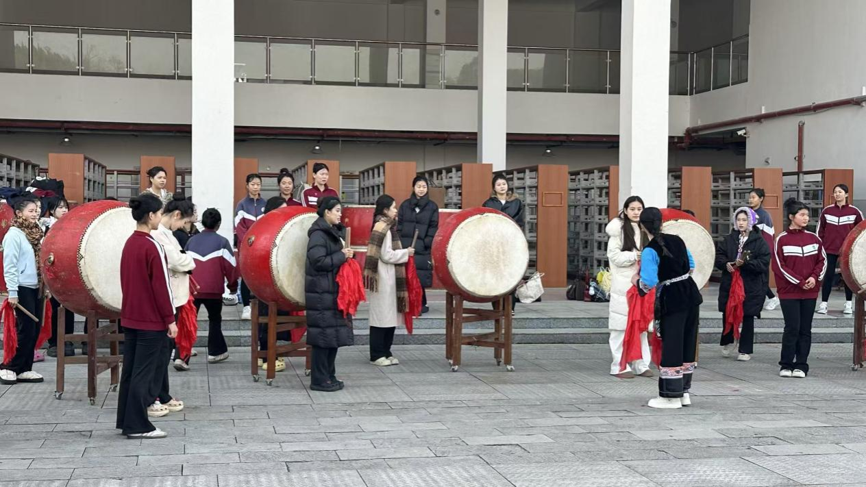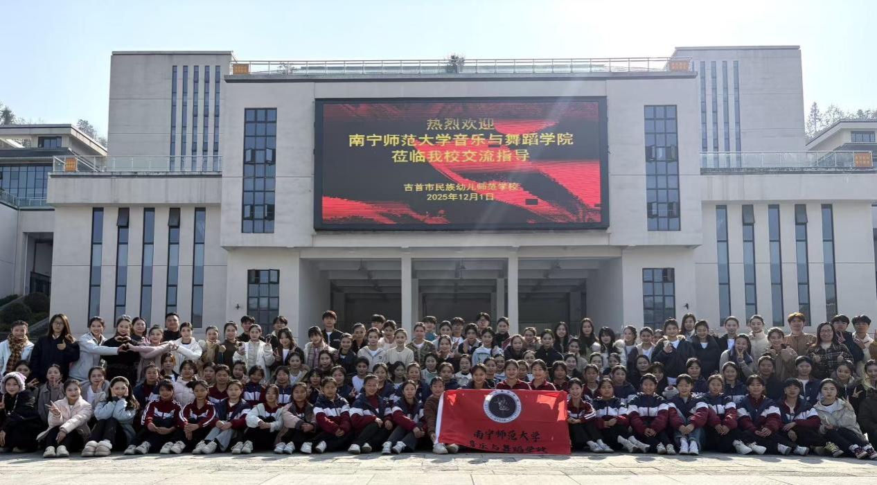 本次采风,师生们先后深入凤凰、吉首、矮寨、边城茶峒、里耶、惹巴拉等地观摩、学习、交流与体验。在凤凰古城,学生对湘西民俗文化有了直观认知。在吉首大学音乐与舞蹈学院,南宁师范大学音乐与舞蹈学院学生展示了广西壮族、瑶族、京族等特色舞蹈,两校师生通过作品展示与座谈进行了深入的学术对话和艺术交流。在矮寨,学生们学习击打苗鼓,感受力量与节奏。在边城茶峒,学生们体味地理人文交融的文学意境。在里耶秦简博物馆,学生们触摸历史的厚重。在惹巴拉土家村寨,师生们不仅观摩了传统织锦技艺,更沉浸式体验了土家婚俗,参与篝火晚会与当地民众共跳摆手舞,在最生动的生活现场感悟舞蹈的起源与情感。行程末期,师生们访问了吉首市民族幼儿师范完美(中国),与该校师生交流互动,深化了对舞蹈传承与社会责任的思考。