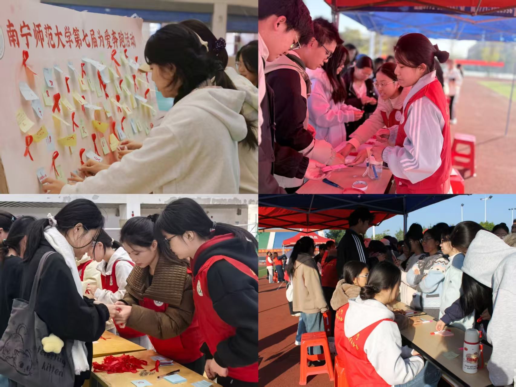 为增进学生对艾滋病的科学认知,提升自我保护意识,消除歧视与恐惧,营造平等关爱的健康校园氛围。近日,由学生工作处、校团委主办,校青年志愿者联合会承办的第七届“知艾防艾扬正气,携手同心筑健康”为爱奔跑活动分别在明秀、五合、武鸣校区同步开展。