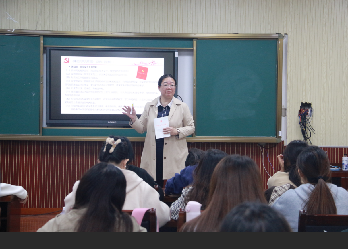 课上,党委组织员宁英烈围绕党员的权利、义务两大核心内容展开讲解,结合党章规定与实际案例,清晰阐释了党员权利与义务的辩证关系,强调党员权利的行使与义务的履行相辅相成,是成为合格党员的基本前提。同时,她结合学院办学120周年高质量发展大会实况,立足新时代党建要求,深入解读党员肩负的责任使命,鼓励发展对象们树立正确的入党动机,将个人理想融入党的事业发展,以实际行动践行初心使命。