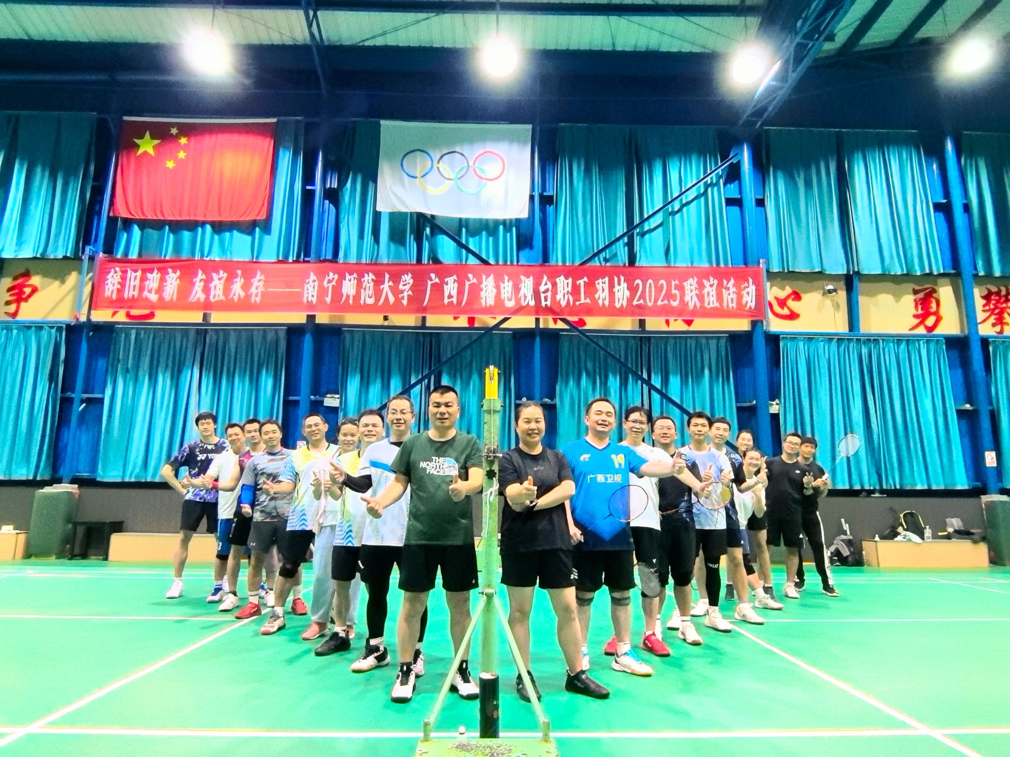 为增强团队凝聚力,促进交流,12月16日晚,我校教职工羽毛球协会与广西电视台职工羽毛球协会在我校建政校区教育大厦四楼体育馆成功举办联谊赛。