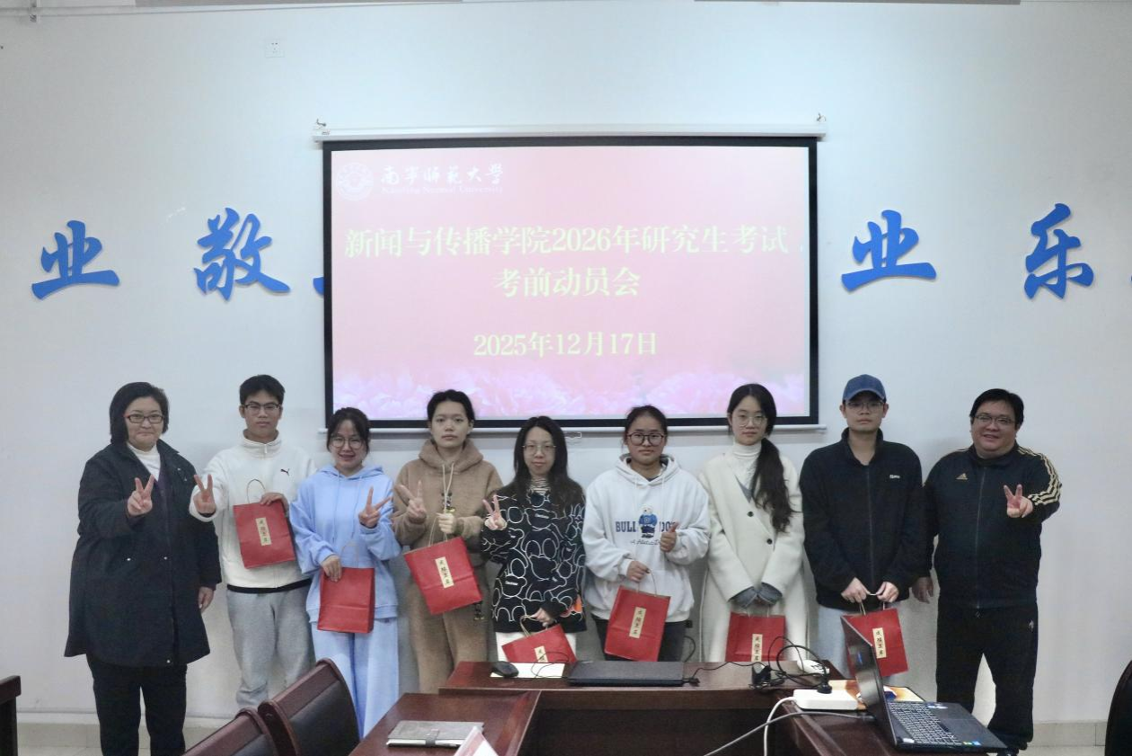 12月17日上午,新闻与传播学院在理综楼304会议室隆重举行2026年研究生考试考前动员会暨诚信教育专项活动。学院党委书记聂卉、院长梁颖涛、党委副书记黄敏以及2022级全体考研学子参加活动。活动由学工办辅导员惠旋主持。