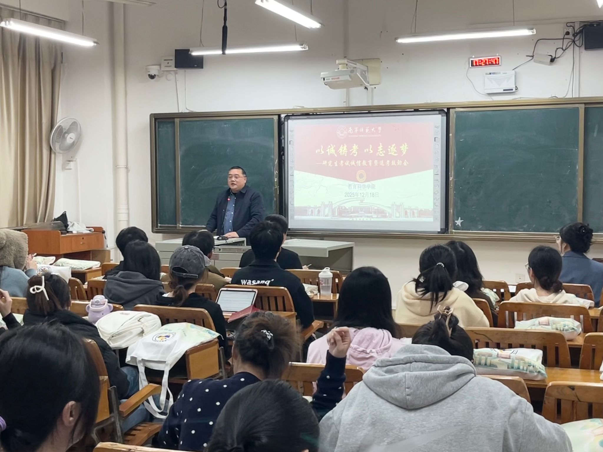 为营造风清气正的考试环境,12月18日下午,教育科学学院在明秀校区文星楼210教室组织召开了“以诚铸考,以志逐梦”研究生考试诚信教育暨送考鼓劲会。学院院长李强、党委副书记谢珊及团委书记蒋欢参加会议,会议由谢珊副书记主持。