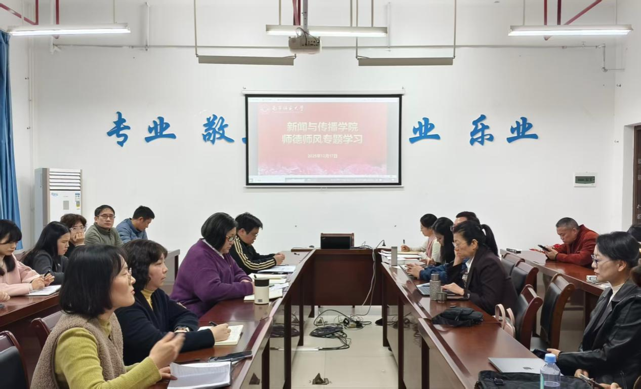 12月17日下午,新闻与传播学院在理综304会议室召开师德师风专题学习会议。学院党委书记聂卉主持会议,学院领导班子和全体教师参加学习。
