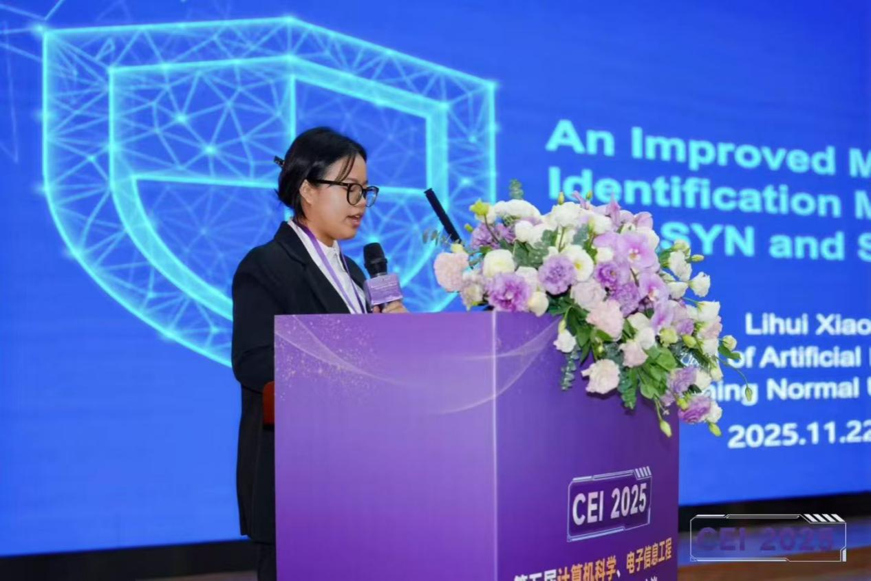 由人工智能学院23级本科生肖力惠为一作、李林老师为通讯作者的研究成果论文《An Improved Malicious Traffic Identification Model With ADASYNand Sparse Attention》成功被EI会议CEI(计算机科学、电子信息工程和智能控制技术国际学术会议)录用。肖力惠在会议上作了口头报告,并与国内外学者展开了深入交流。团队多名本科生也积极参与到该研究中。