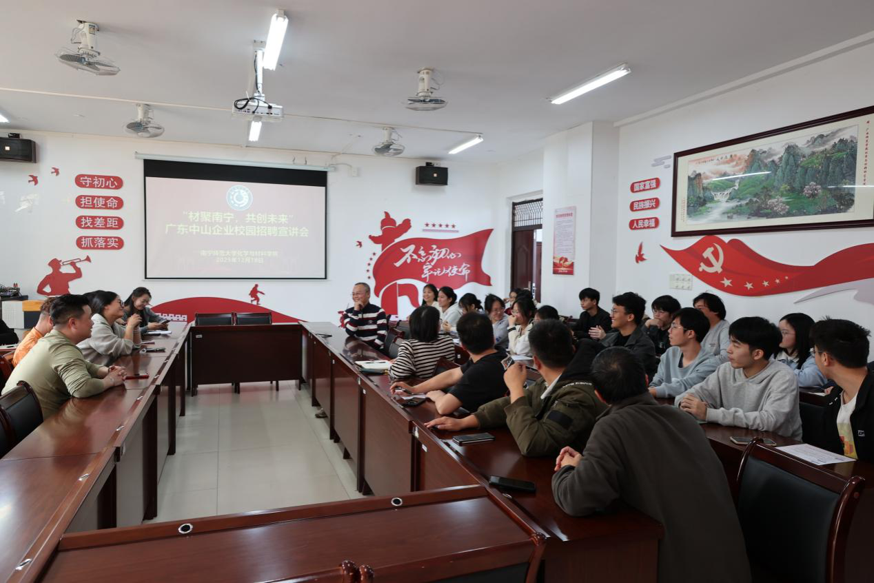 为积极拓展就业岗位,精准对接区域产业发展需求,12月23日下午,化学与材料学院邀请中山市伟宏制辊有限公司与中山叽咕未来科技有限公司来校举办招聘宣讲会,为毕业生搭建了优质的就业对接平台。