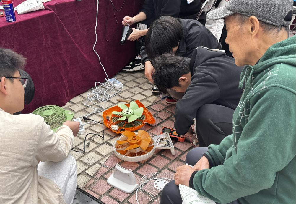 本次主题活动多板块同步开展、亮点纷呈。作为由物电学院牵头的核心特色服务,“情暖银龄·青春同行”小型家电义务维修活动深受老同志及师生喜爱。现场,学院大学生电子科学技术协会学子组成专业维修志愿服务队,凭借扎实的电子电路专业知识与过硬的实践技能,有条不紊地对电饭煲、电风扇、收音机、吹风机、电磁炉、烧水壶、排插等小型家电进行故障检测、拆机检修与零件调试。志愿者们耐心沟通故障情况、细致讲解维修思路,对需更换零件的情况提前说明费用自理事宜并提供合理建议,全程服务规范贴心,切实解决了师生及老同志的生活难题,充分彰显了学院学子的专业素养。