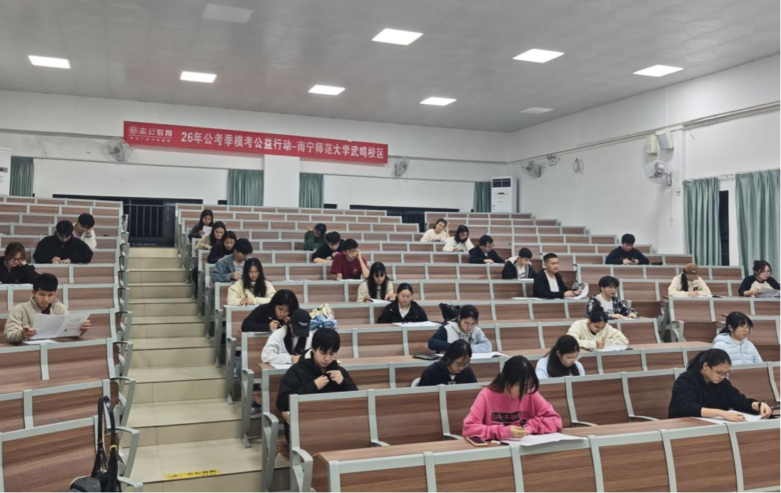 本次活动由支部牵头,组织12名党员及入党积极分子全程参与考务组织、现场引导与监考服务等工作,保障了模拟考试严谨有序进行。本次模考严格参照公务员招考流程与标准,吸引约全校约130名同学报名参与。考场秩序井然,考生认真作答,沉浸式体验了真实考公氛围。
