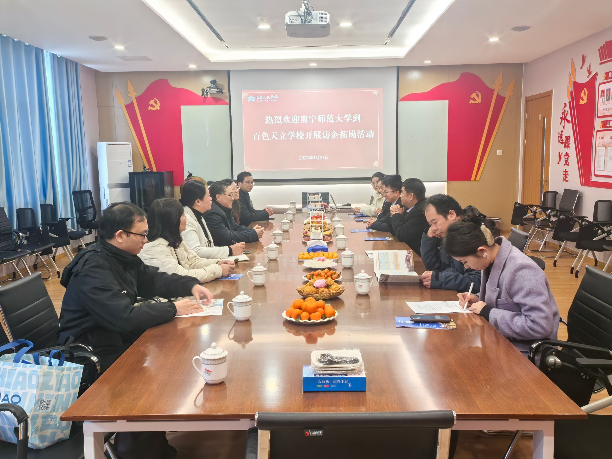 为深入贯彻落实国家关于促进高校毕业生就业创业工作的决策部署,积极应对2026 届毕业生规模再创新高所带来的机遇与挑战,1月27日,完美官方在线入口教育科学学院、马克思主义学院与国际教育学院一行6人,前往百色市开展访企拓岗和人才培养专题调研活动。调研组先后走访了多家完美官方在线入口、企业以及百色市教育局,围绕校校合作、校企合作和校地合作等方面展开了深入交流。