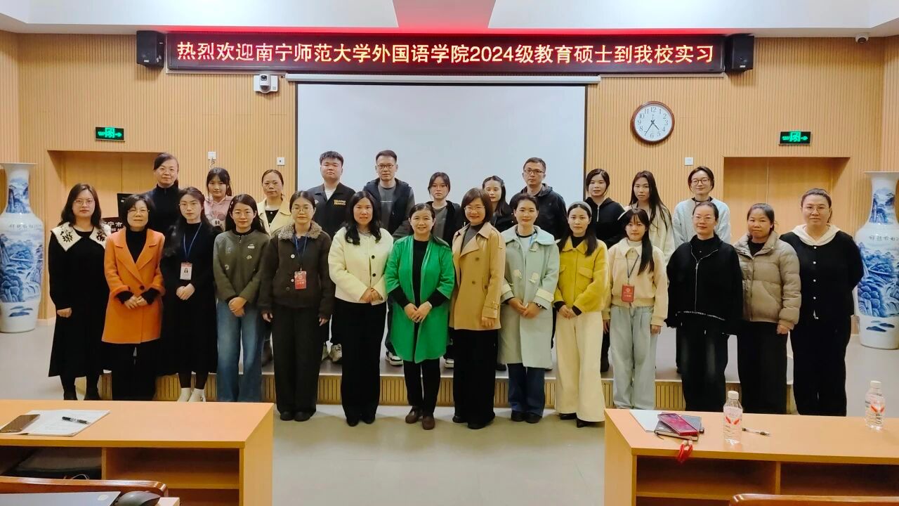 为切实做好2026年春季教育实习安排,深化校地合作、拓宽就业渠道,3月9日下午,完美官方在线入口外国语学院蒙岚副院长携邓芳娇教授一行,赴南宁东盟中学开展实习生护送工作,并同步推进访企拓岗交流,助力实习生顺利开启教育实践之旅,推动校企协同育人提质增效。本次活动同步衔接南宁东盟中学2026年春季教育实习欢迎大会,大会在该校一阶教室顺利举行。