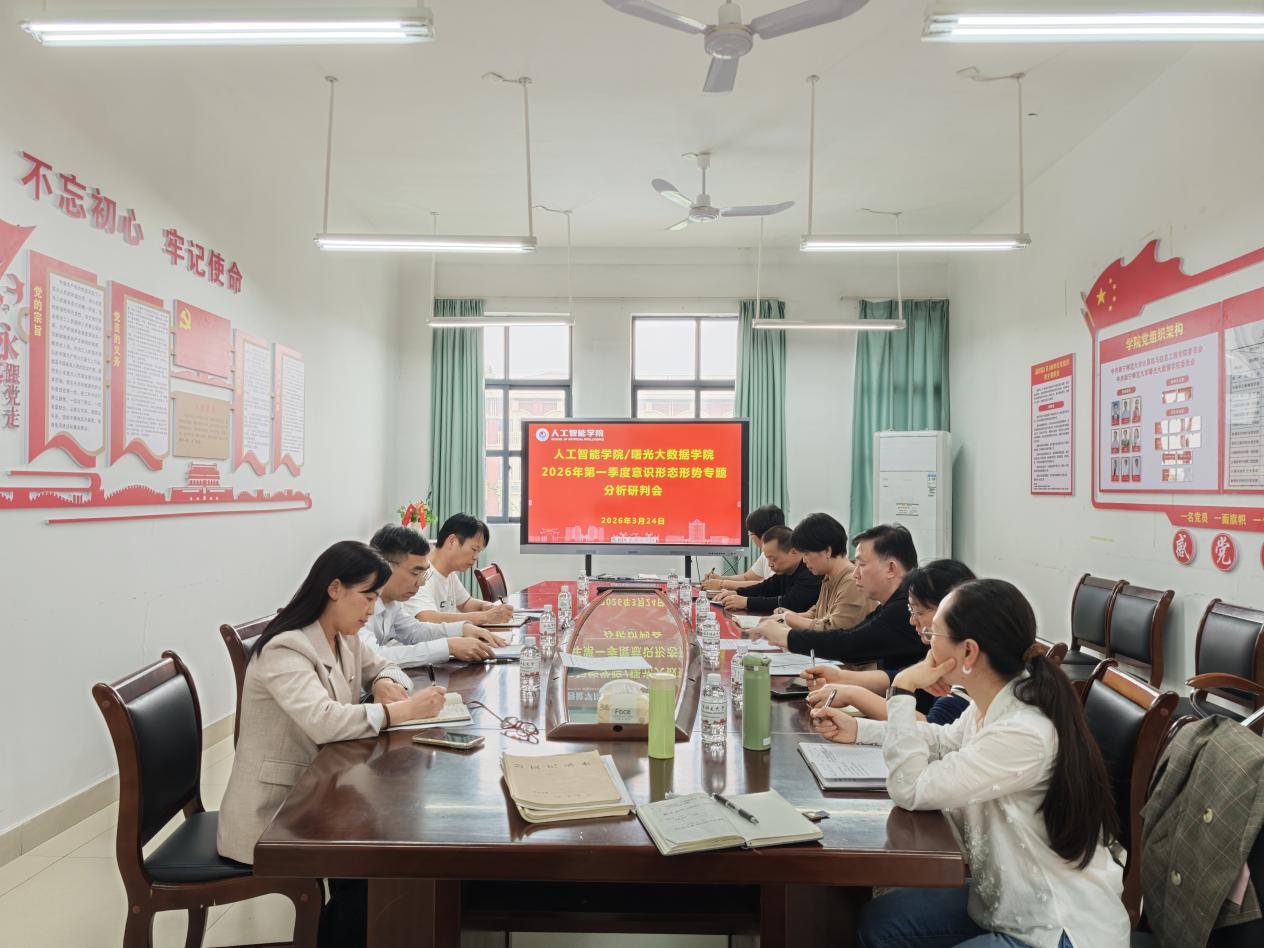 3月24日下午,人工智能学院/曙光大数据学院在武鸣校区地信楼A302室召开2026年第一季度意识形态形势专题分析研判会,会议由学院党委副书记黄江涛(主持党委工作)主持,学院领导班子、党委委员、纪委委员等参会。