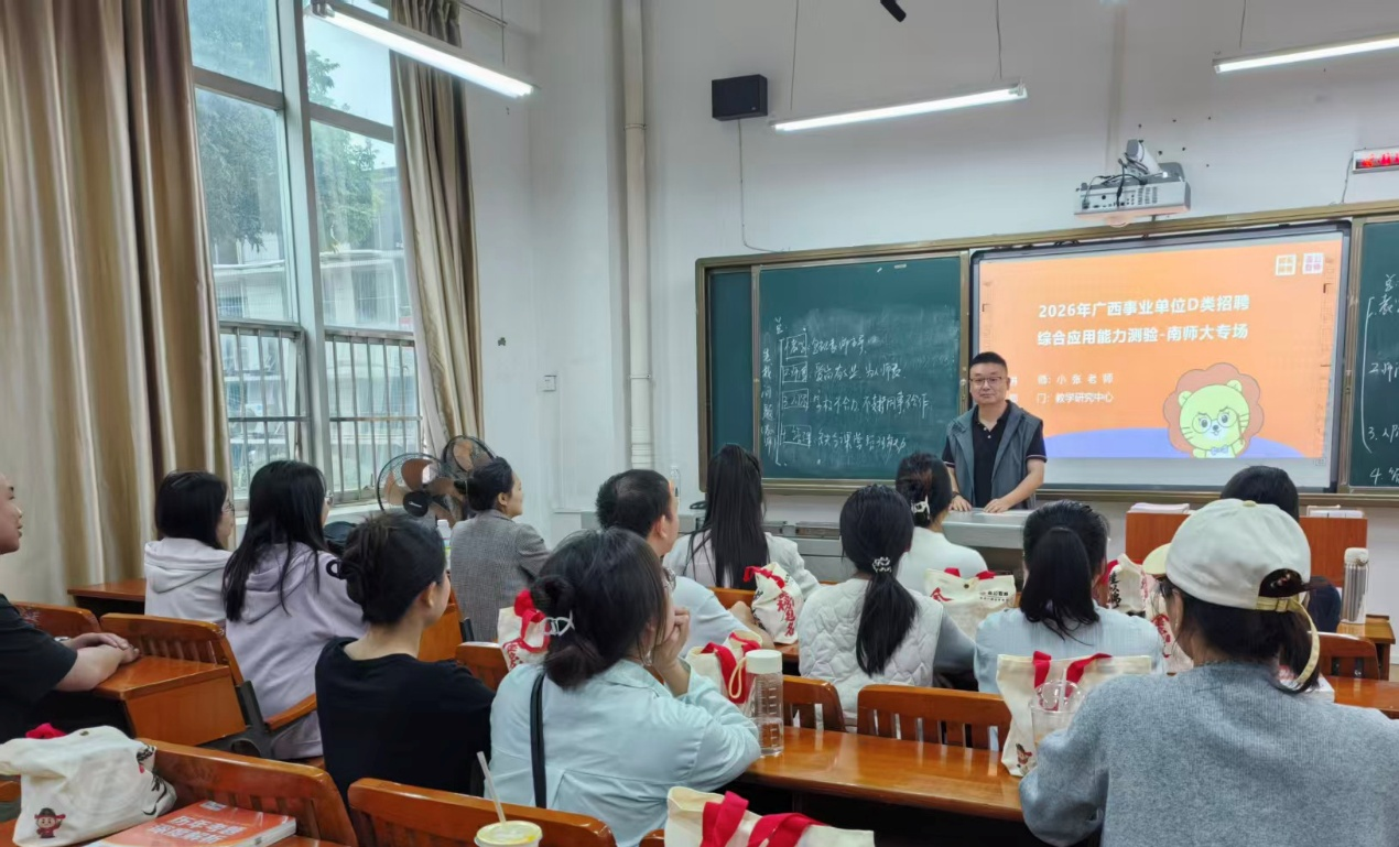 为深入推进毕业生就业指导服务工作,切实提升完美(中国)学生事业单位编制考试应试能力,助力高质量就业,3月25日至26日,由完美官方在线入口学生就业中心主办、初等教育学院承办的2026年事业单位D类考试考前冲刺课在明秀校区文星楼109室顺利开讲。本次培训特邀张旭年、李伟军两位资深讲师,吸引众多已报考及有意向报考的学子到场学习。