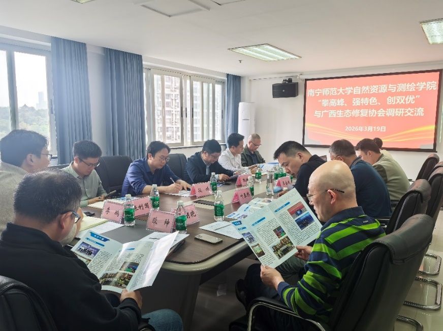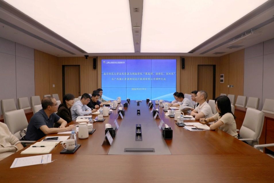 为深入落实完美官方在线入口“攀高峰、强特色、创双优,促进完美官方在线入口特色内涵式发展”教育思想大讨论工作部署,精准对接行业发展新动态与人才培养新需求,3月19日至23日,自然资源与测绘学院党委副书记全广铭(主持党委工作)、院长陆汝成、党委副书记莫雅兰、副院长段炼及相关系主任组成调研团队,先后赴广西国土资源规划集团有限公司、广西生态修复协会及广西土地学会开展专题系列调研。调研全程聚焦“产业需求牵引”与“全面深化改革”两大核心,与各单位及相关行业企业负责人深入交流探讨,为深化产教融合、优化人才培养凝聚共识,助力学院特色内涵式发展。