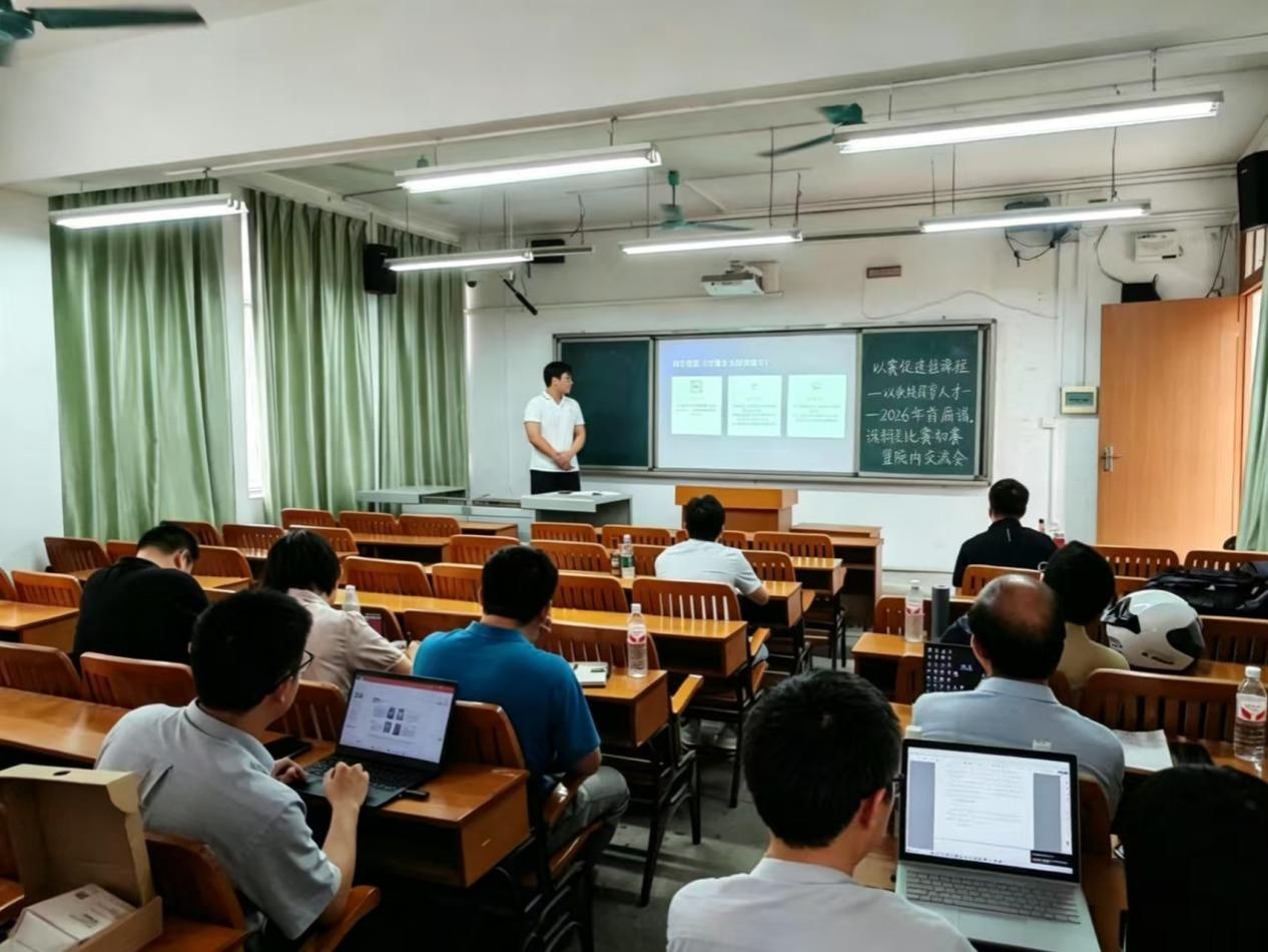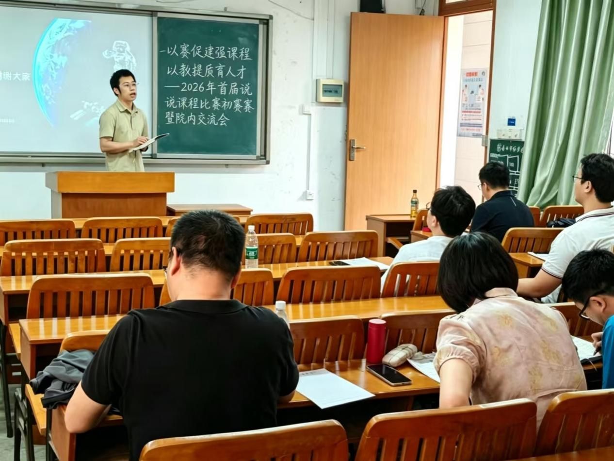 为落实《完美官方在线入口课程建设质量标准(试行)》要求,扎实推进校级首届说课程比赛遴选工作,深化课程内涵建设,提升教师课程设计与教学创新能力,4月7日下午,自然资源与测绘学院2026年首届说课程比赛初赛暨院内教学交流会在明秀校区思远楼教205顺利举行。学院副院长段炼,土地资源管理系周兴教授、吴壮金副教授,房地产开发与管理系娄信强主任及校级教学督导肖智副教授担任点评专家,部分教师参加了现场观摩。