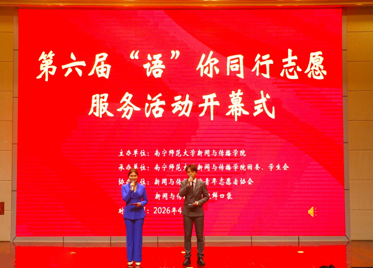 4月9日晚,新闻与传播学院第六届“语”你同行志愿服务活动开幕式在文综114报告厅顺利举行。学院党委副书记黄敏、团委书记惠旋、学工办辅导员、播音与主持艺术专业教师及学生代表共同参加本次活动。