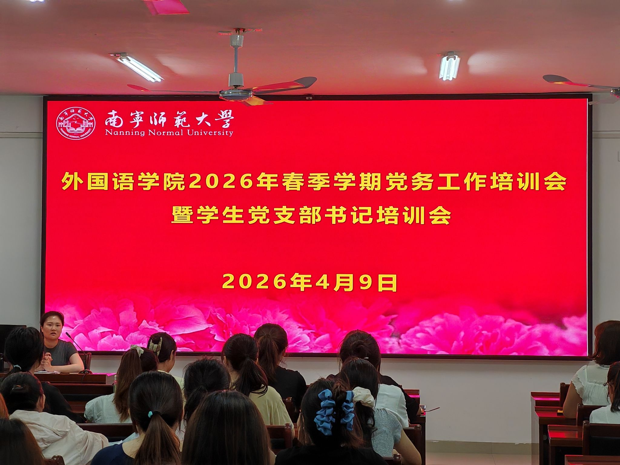 为进一步提升党务工作规范化水平,强化学生党支部书记履职能力,夯实基层党建基础,推动学生党建工作提质增效。4月9日,外国语学院在武鸣校区实验楼1B-515会议室召开2026年春季学期党务工作培训会暨学生党支部书记培训会。会议由学工办黄慧梅老师主讲,学院全体学生党支部书记、支委、支委助理以及党务助理参加此次会议。