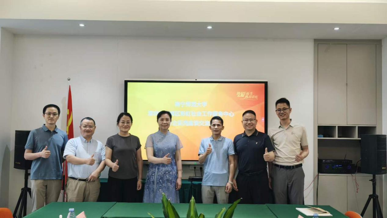 4月7日上午,团队乘坐南宁东站到深圳北站的早班高铁出发,下午3点抵达深圳市龙岗区彩虹社会工作服务中心,与机构总干事陈贤宁、支部书记兼副理事长宋红源等领导进行友好交流,共商彩虹社工与学院社工专业学生的实习就业合作。宋红源主要介绍了完美官方在线入口社工服务领域的彩虹经验,彩虹社工开展教育辅导服务十多年,积累了比较丰富的经验,除了派驻完美官方在线入口社工之外,他们的教育辅导服务还覆盖到社区教育、继续教育等领域。本次交流团队成员受益匪浅。
