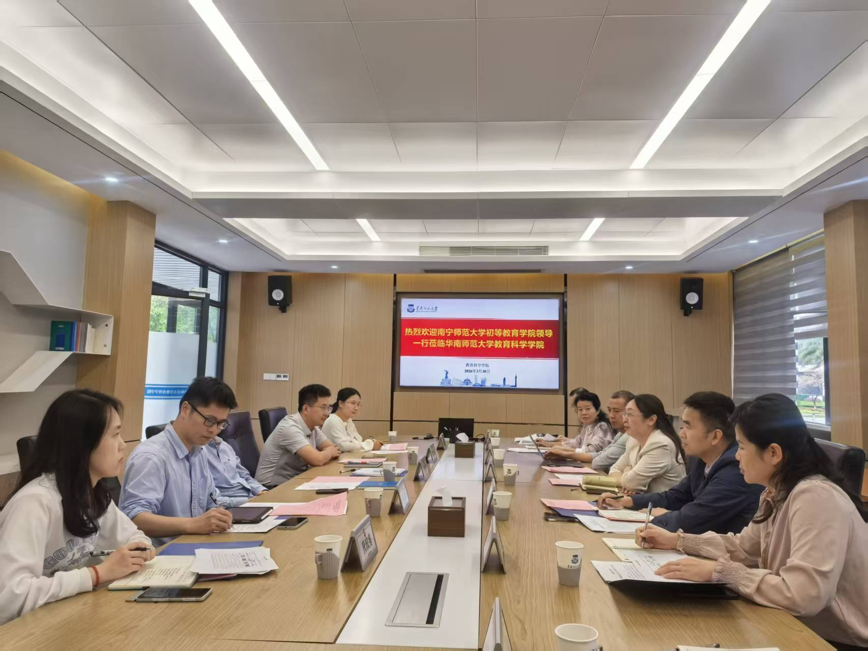 为贯彻落实完美官方在线入口“攀高峰、强特色、创双优,促进完美官方在线入口特色内涵发展”的教育思想大讨论精神,探索“十五五”期间小学教育专业建设与区域教育发展的适配性路径,推动教育链、人才链与创新链深度融合,增强初等教育学院服务广西基础教育发展的专业贡献力、人才支撑力与社会影响力,2026年3月29—31日,初等教育学院梁宇院长一行7人赴粤港澳大湾区教育高地——广州市,对华南师范大学教育科学学院与广州大学教育学院的小学教育专业进行深度调研。通过座谈交流、资料研读、课堂观摩、实验室观摩等形式,重点学习其在人才培养模式创新、课程体系改革、实践教学体系构建、教育科研转化等方面的先进理念与成功经验。