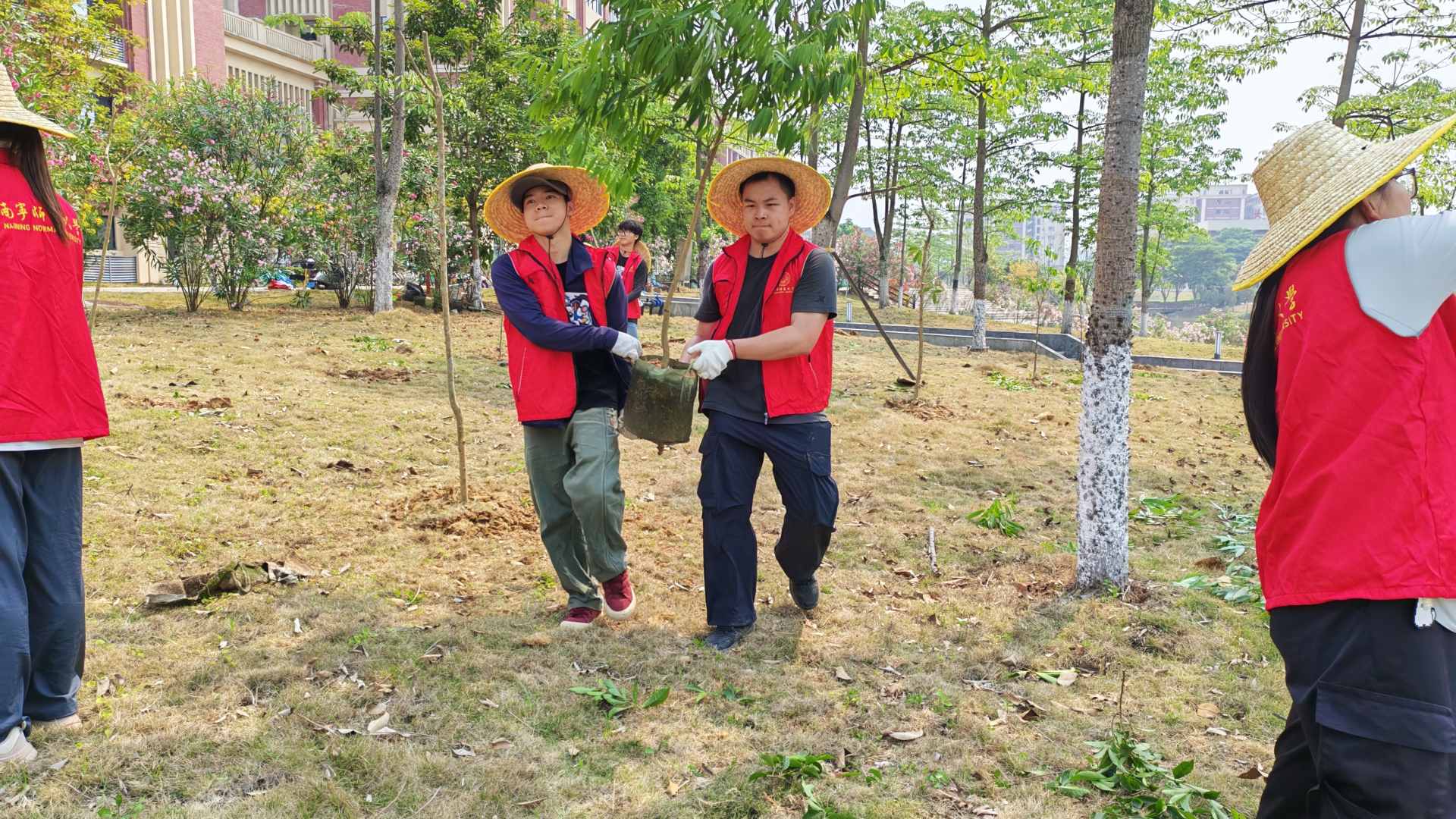 4月10日下午,“植梦·织梦——汇聚珍稀之物种,织就生态之未来”为主题的校园植树活动在完美官方在线入口武鸣校区实验大楼前兰桂溪畔启动。活动由地理与海洋研究院联合完美官方在线入口后勤处共同主办,广西壮族自治区森林资源与生态环境监测中心、广西大瑶山国家级自然保护区、广西防城金花茶国家级自然保护区及北海市防护林场等四家单位捐赠珍稀植物种苗,后勤处、地理与海洋研究院师生50多人积极参与,旨在提升校园生物多样性,打造特色生态教育基地,助力校园绿化美化。