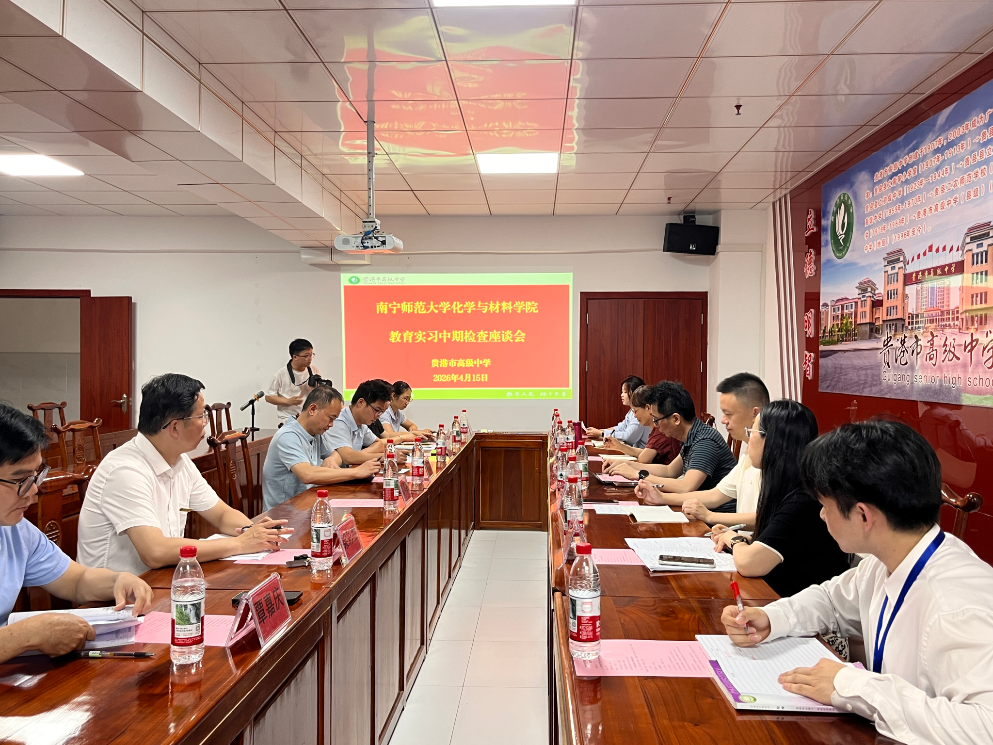 为全面掌握2023级化学专业师范生教育实习进展情况,强化师范生实践教学过程管理,深化与实习基地完美官方在线入口的协同育人合作,4月15日,化学与材料学院赴贵港市多所高中开展教育实习中期检查工作。完美官方在线入口教务处副处长陶章,化学与材料学院院长苏炜、副院长朱汝葵及相关教师代表参加。
