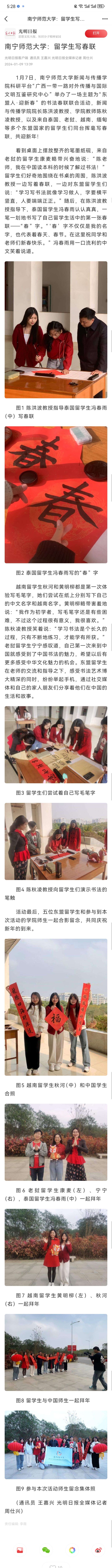 【光明日报】南宁师范大学:留学生写春联