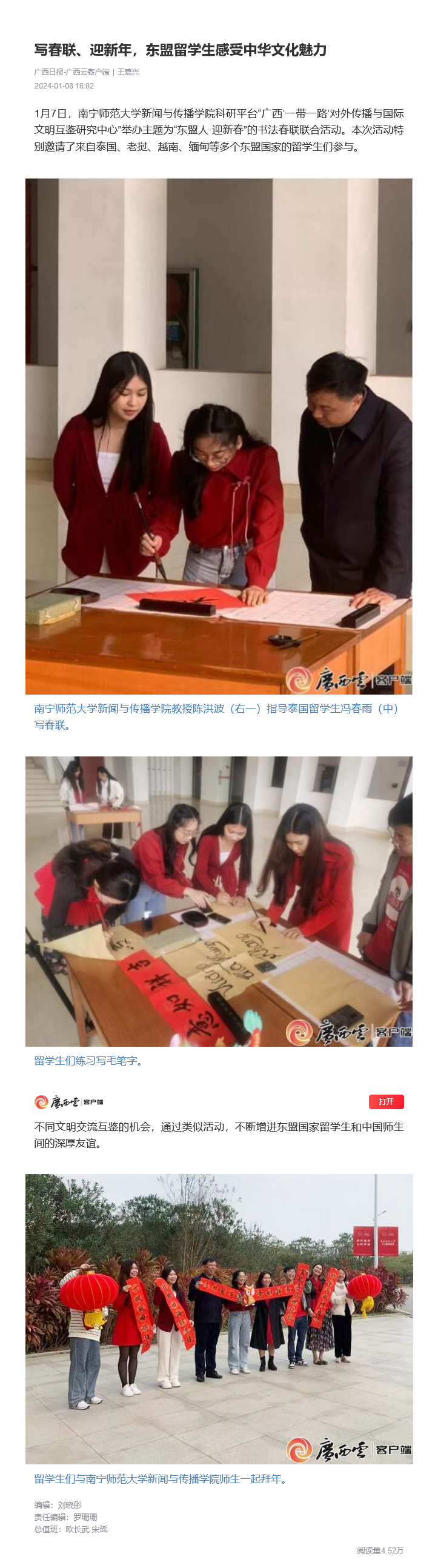 【广西日报】写春联、迎新年,东盟留学生感受中华文化魅力